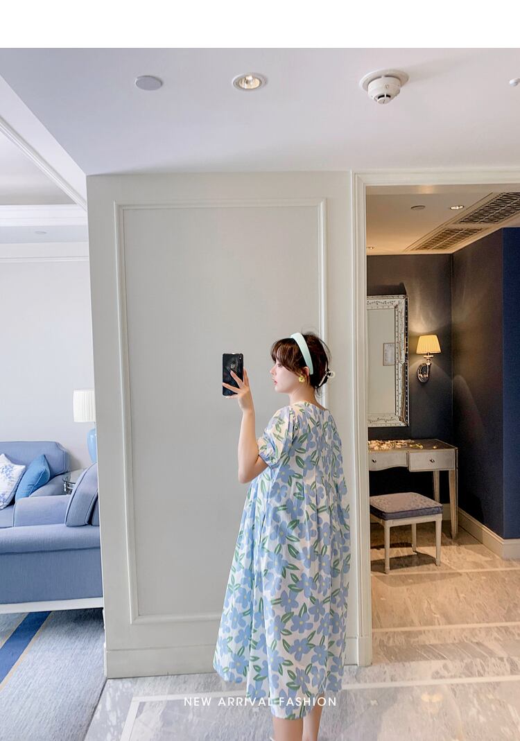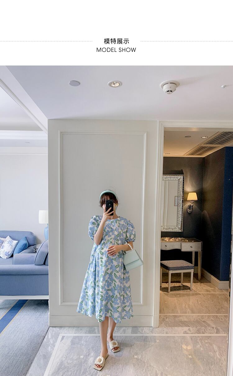 おしゃれ かわいい マタニティウェア ドレス サマープリント柄スカート ロング コットン 夏物 hotmom49371175990