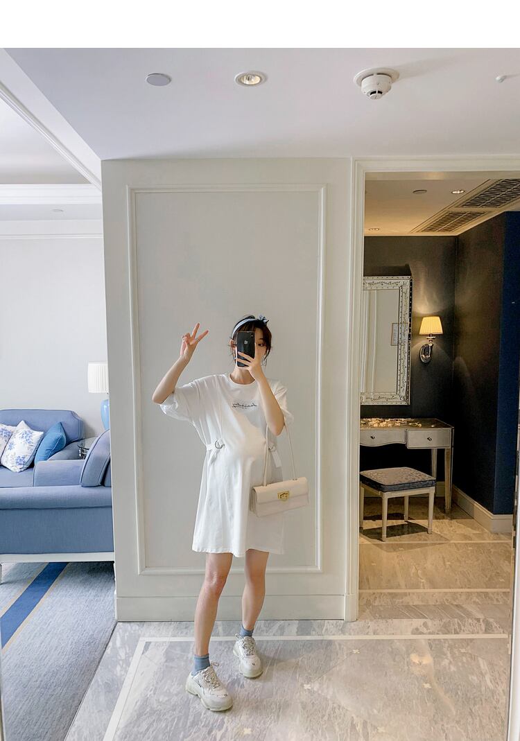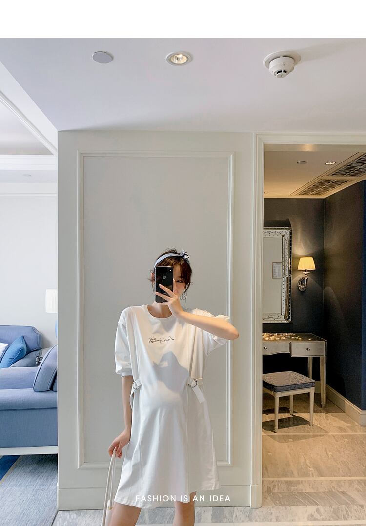 おしゃれ かわいい マタニティウェア サマーTシャツ ルーズロング コットン 大きめサイズ 夏物 スカート ピュア hotmom50403611420