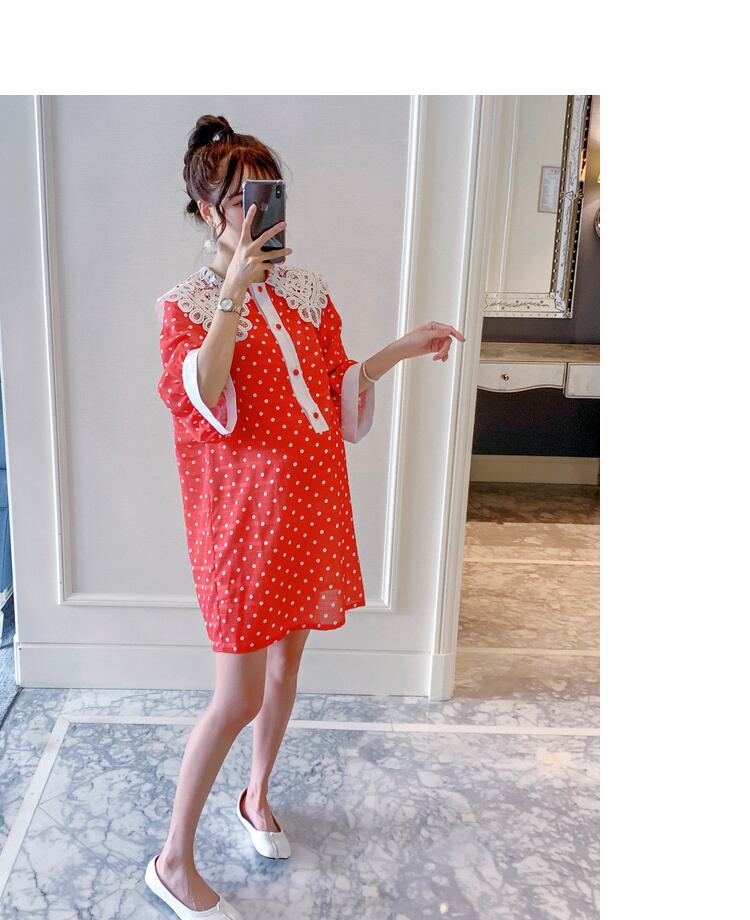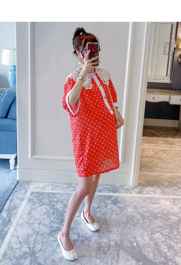 おしゃれ かわいい マタニティウェア ドレス サマールーズ水玉ブラウス スリーブ 夏物 hotmom91976905063