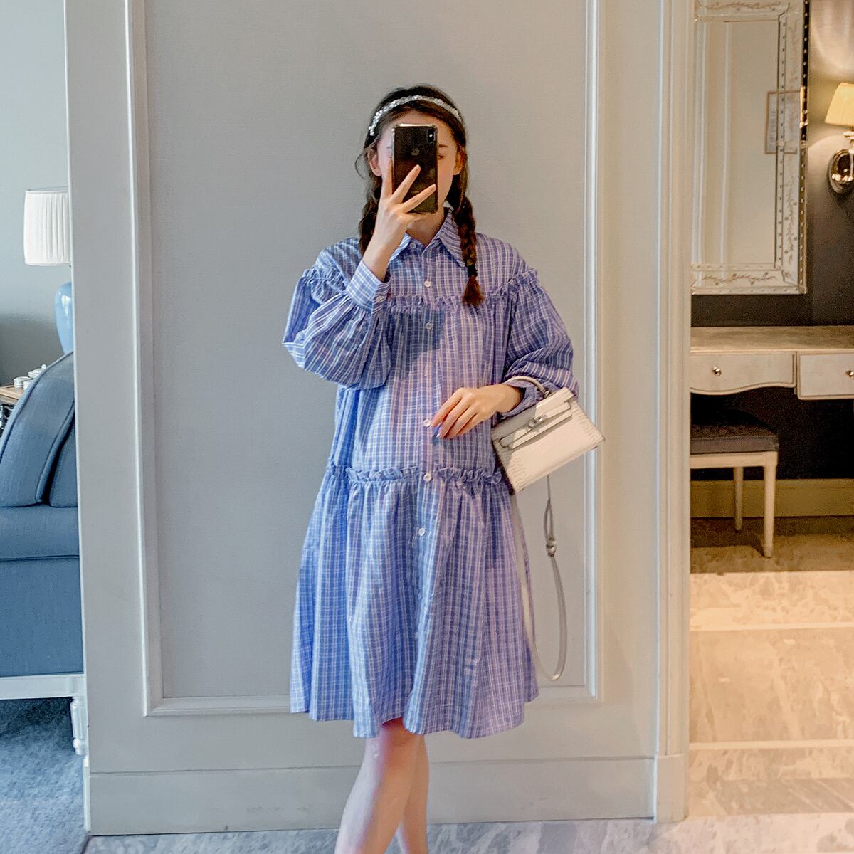 おしゃれ かわいい マタニティウェア オータムシャツ 格子柄スカート スタイル 大きめサイズ 大人ガーリー スウィート キュート カジュアル 秋物 hotmom21893472985