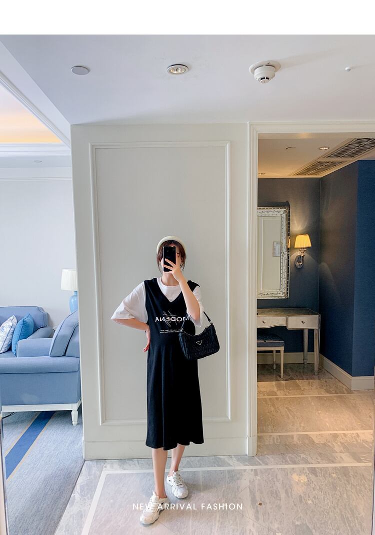 おしゃれ かわいい マタニティウェア ドレス サマーTシャツ スカート ルーズロング 大きめサイズ 夏物 hotmom61715202282