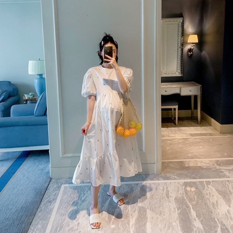 おしゃれ かわいい マタニティウェア ドレス サマールーズスカート レッド 刺繍 夏物 hotmom50814838757