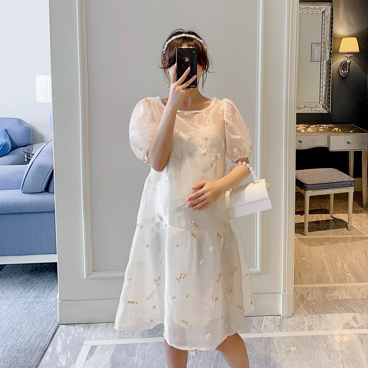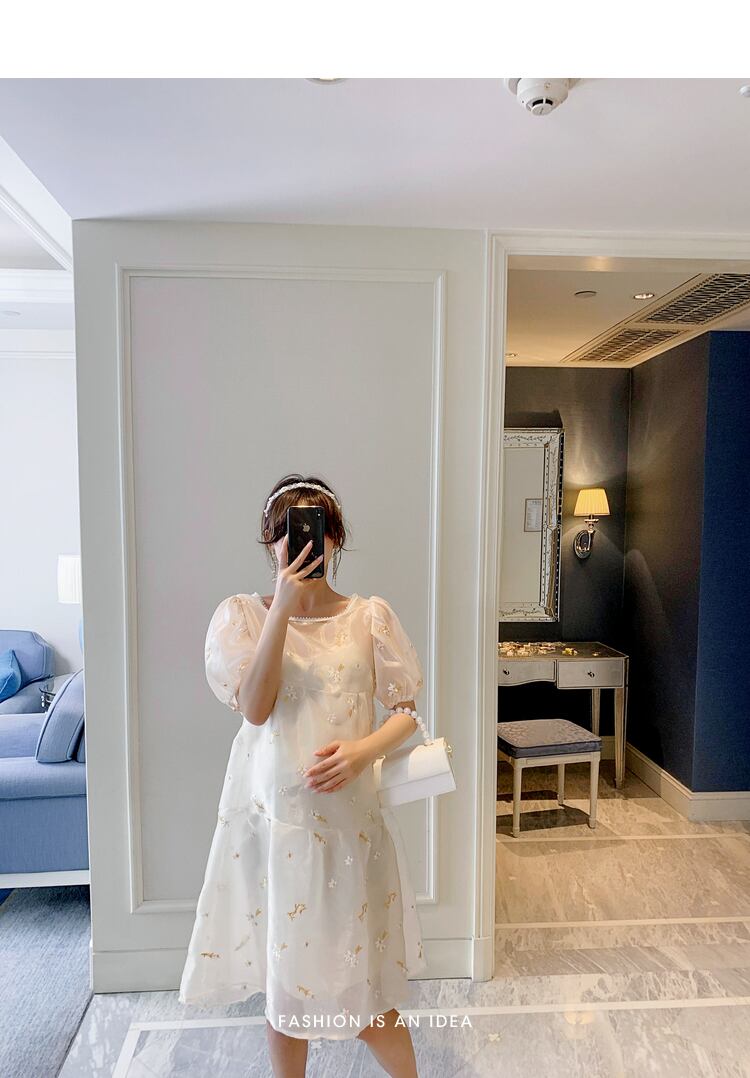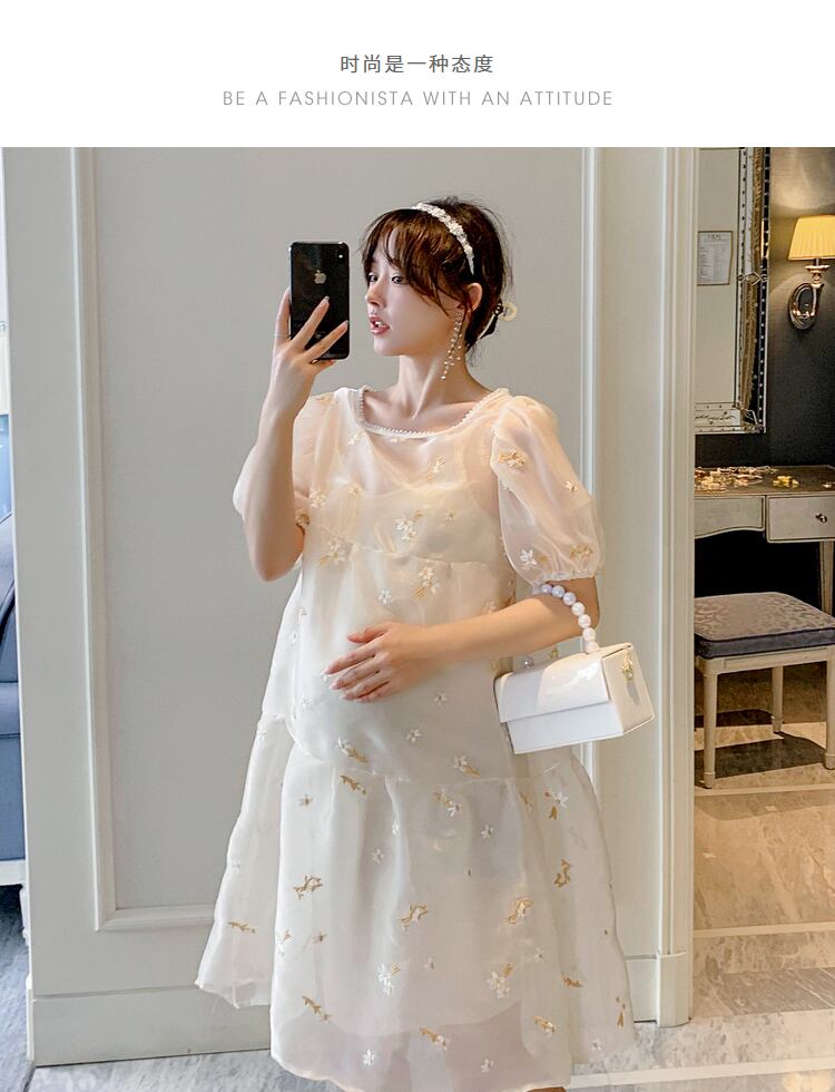 おしゃれ かわいい マタニティウェア Flowerデザイン ドレス サマードレス ワンピース レッド 刺繍 大きめサイズ 夏物 フラワーデザイン hotmom92211116922