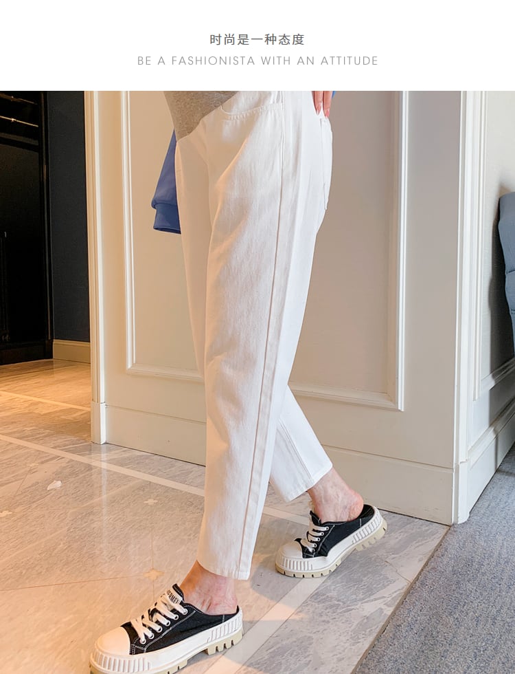 おしゃれ かわいい マタニティウェア ホワイトジーンズ スプリングオータムルーズ 春物 秋物 アジャスタブル hotmom69431928996