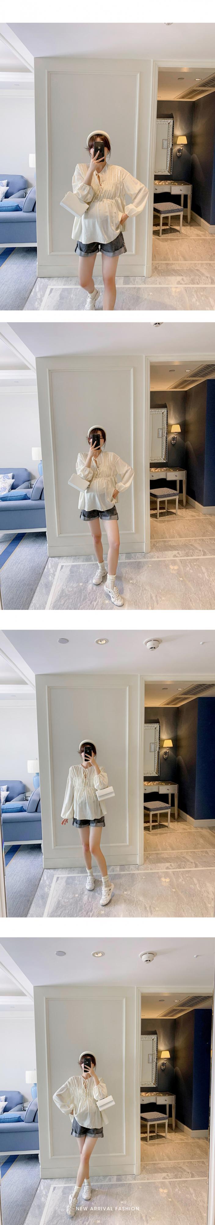 おしゃれ かわいい マタニティウェア ブラウス スプリングサマープリーツTシャツ ロング レース 大きめサイズ 春物 夏物 レースアップ hotmom92189402271