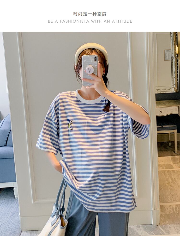 おしゃれ かわいい マタニティウェア ストライプTシャツ シャツ ルーズトップス 大きめサイズ hotmom26162990940