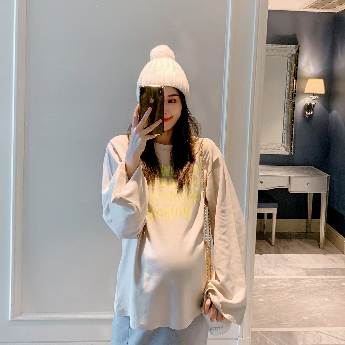 おしゃれ かわいい マタニティウェア スウェット オータムルーズ長袖スリーブスプリングトップス ロング コットン 大きめサイズ 春物 秋物 ピュア hotmom85553224659
