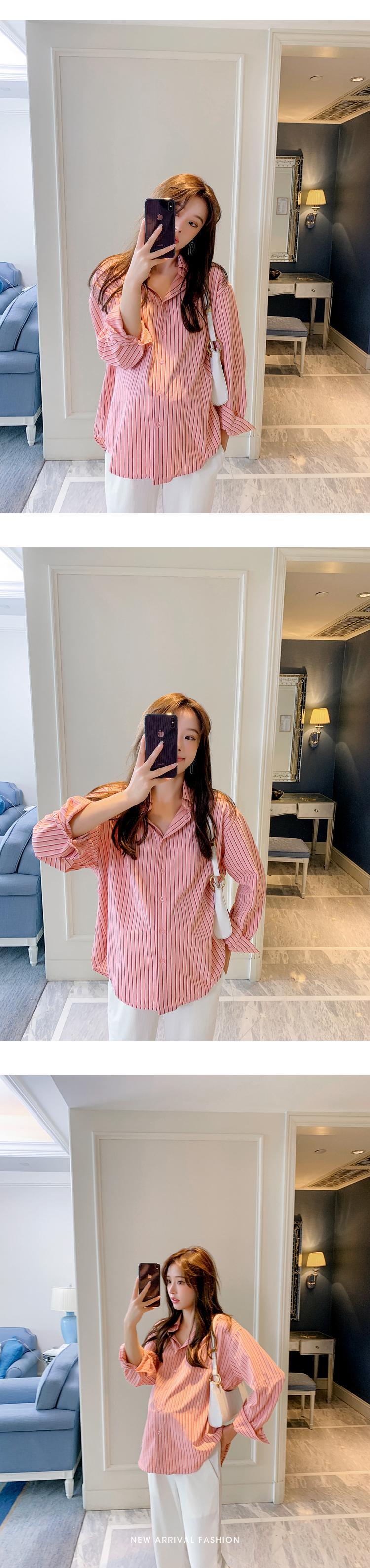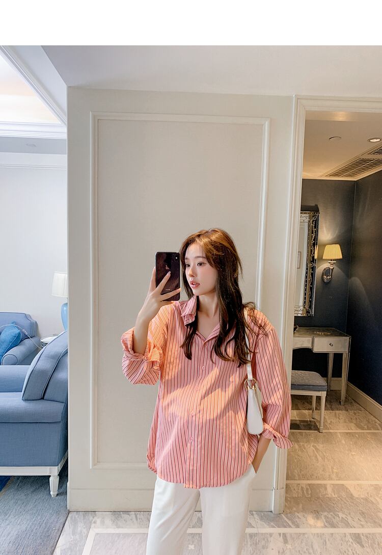 おしゃれ かわいい マタニティウェア シャツ スプリングサマールーズストライプトップス 春物 夏物 hotmom94123811735
