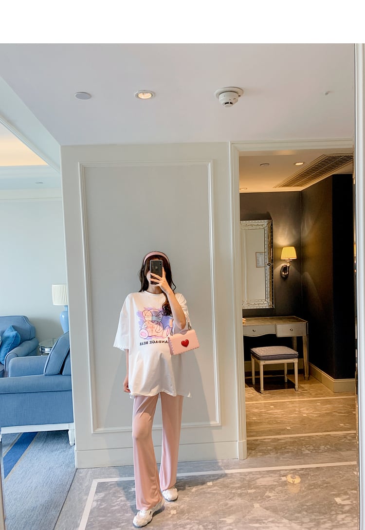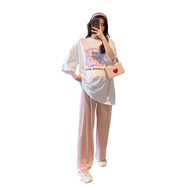 おしゃれ かわいい マタニティウェア Tシャツ ルーズパンツ ニット半袖スリーブサマー ショート ハーフスリーブ 大きめサイズ 夏物 シルク hotmom23638778007