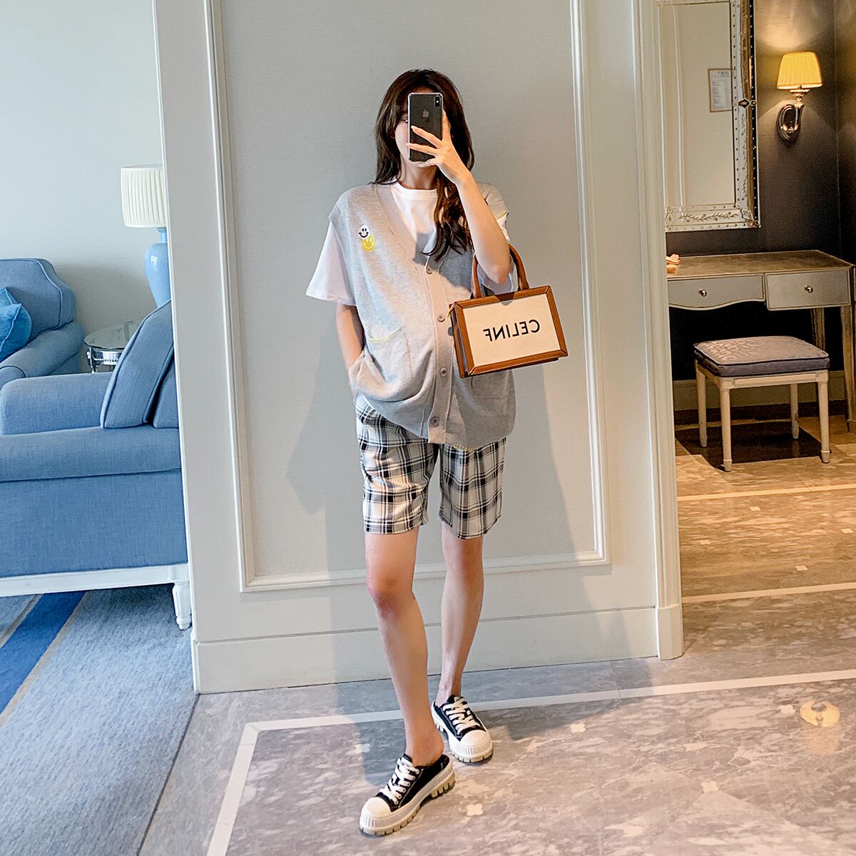 色:白いTシャツ,ライトグレーのベスト,ホワイトTシャツ+ライトグレーベスト