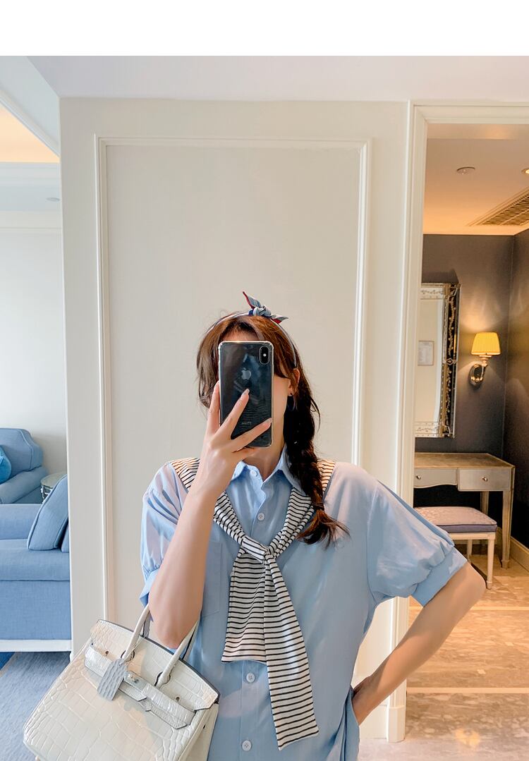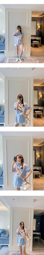 色:青いシャツ,ホワイトショーツ,青いシャツ+白いパンツ