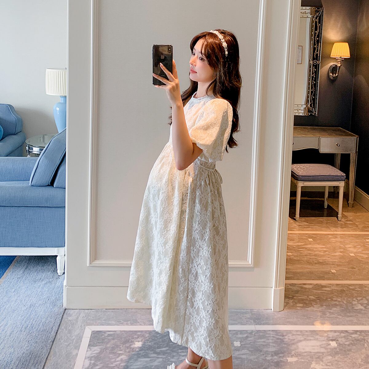 おしゃれ かわいい マタニティウェア スカート スリーブドレス ルーズサマーロング 夏物 hotmom67544399035