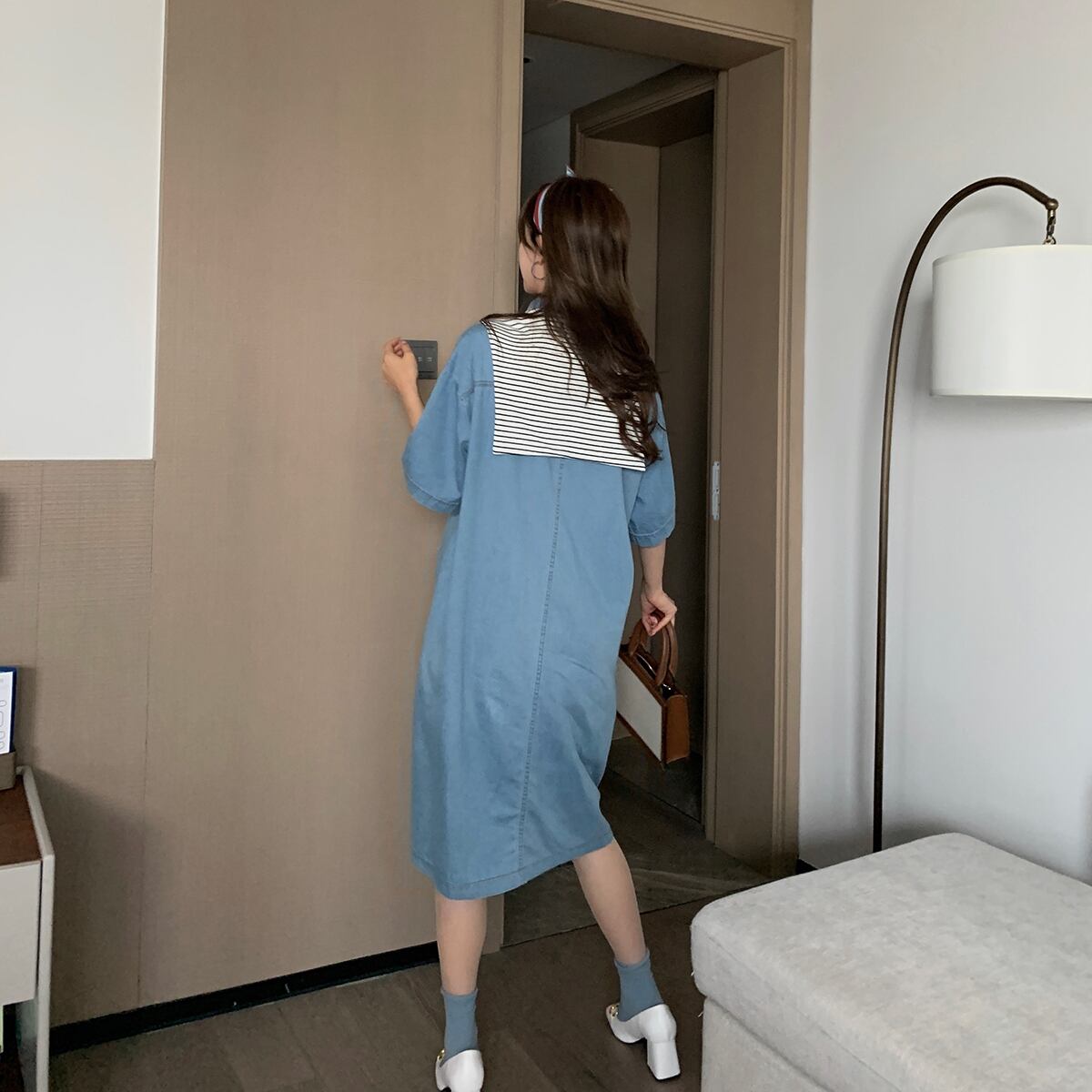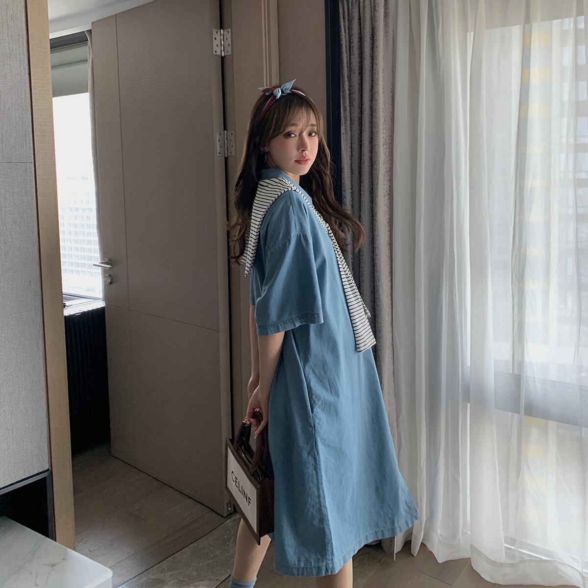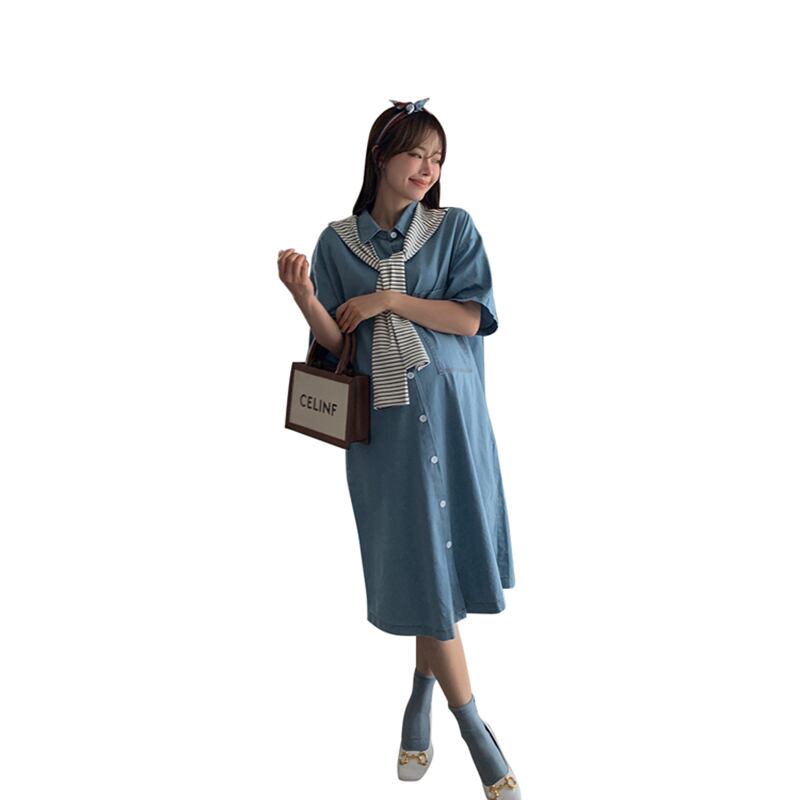 おしゃれ かわいい マタニティウェア シャツ スカート ルーズストライプサマー 大きめサイズ 夏物 hotmom93510385394