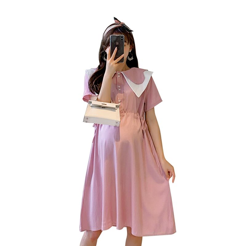 おしゃれ かわいい マタニティウェア ドレス サマーロングカラースカート スタイルギャザーウェスト 夏物 hotmom46018020082