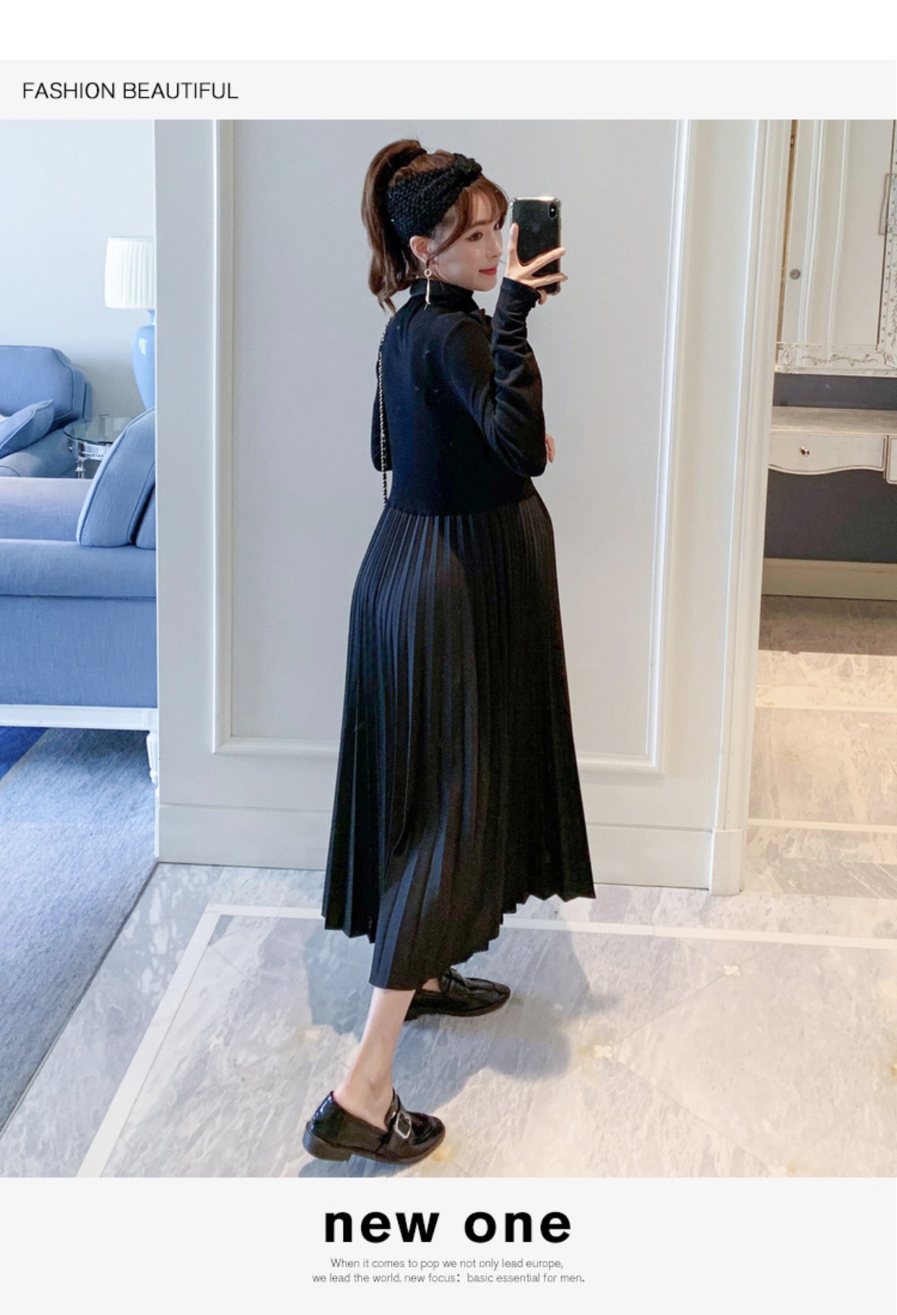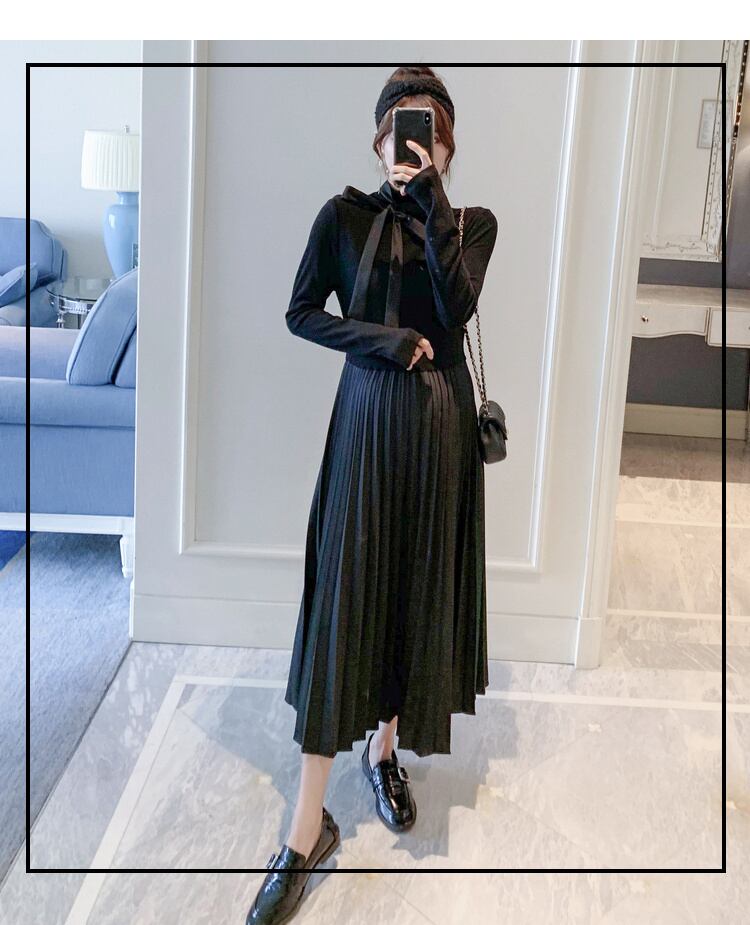 おしゃれ かわいい マタニティウェア ドレス スプリングスカート ルーズ薄手プリーツ 春物 ステッチ hotmom52269840059