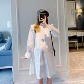 おしゃれ かわいい マタニティウェア オータムシャツ ドレス ロングスタイルルーズ 大きめサイズ 秋物 hotmom27952623785