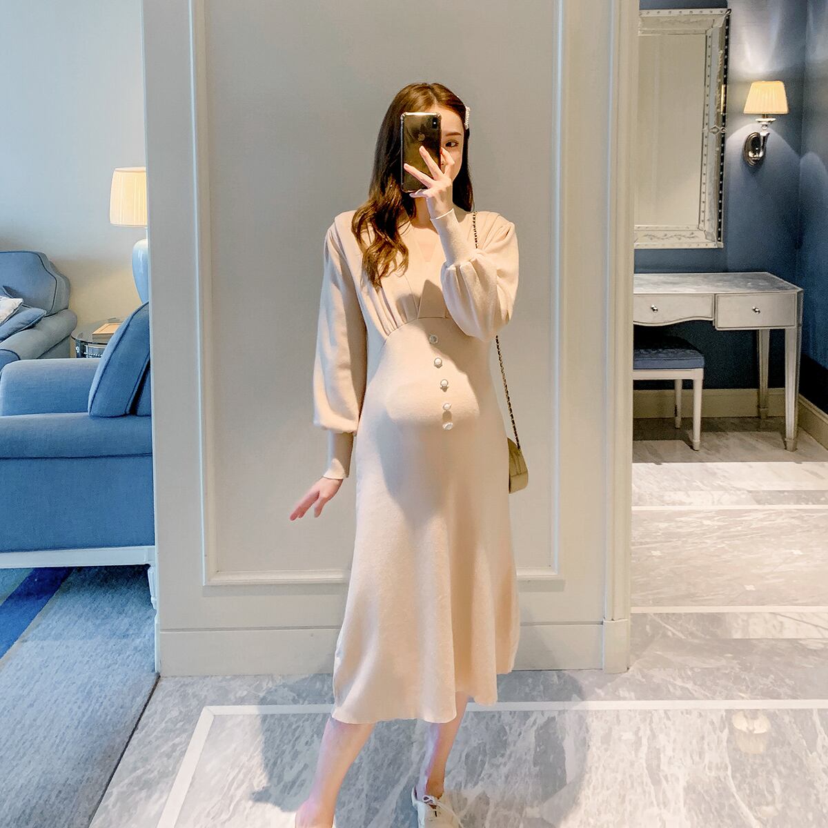 おしゃれ かわいい マタニティウェア ニットスカート ドレス オータム ロング 秋物 hotmom31665363262