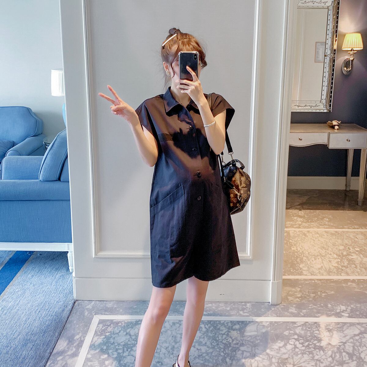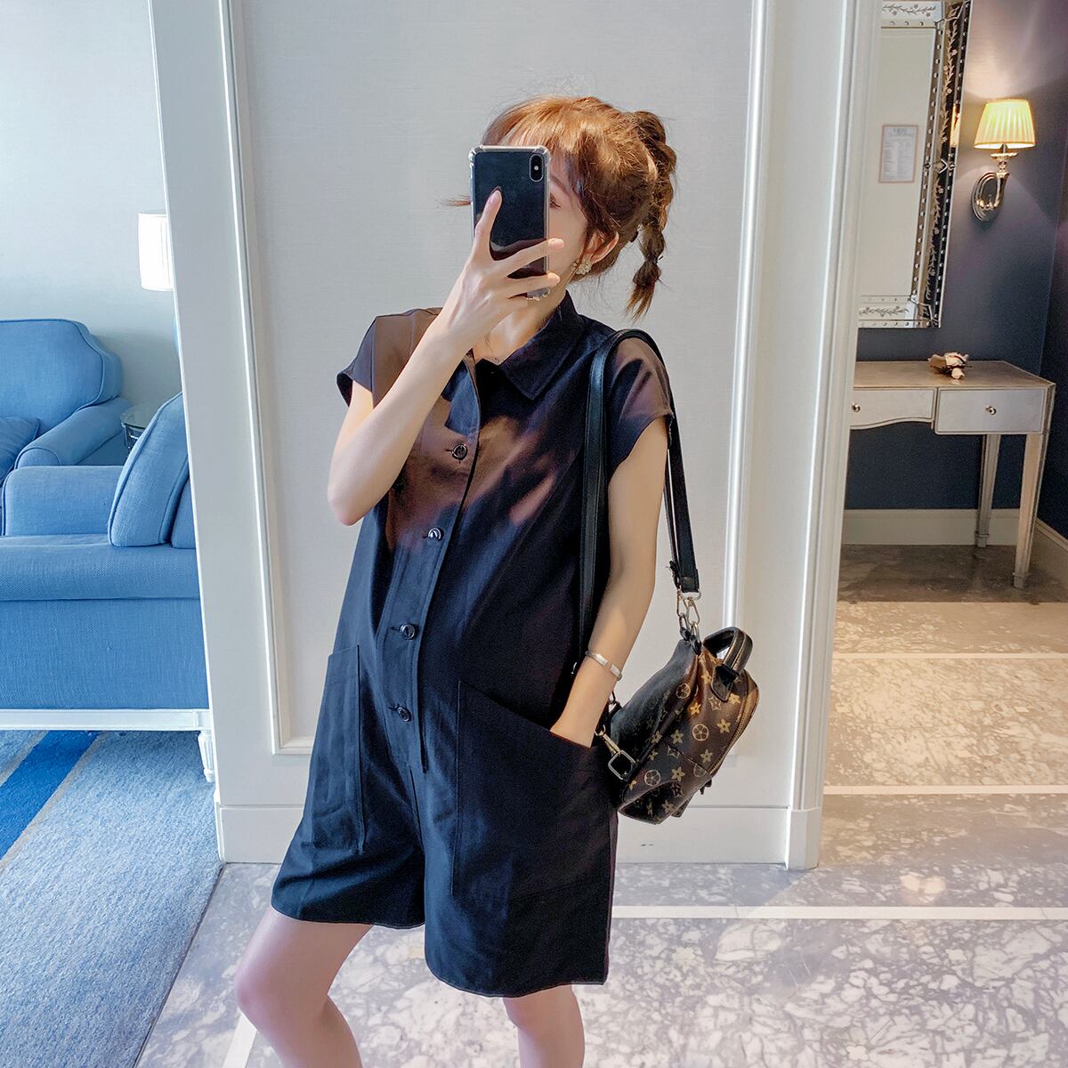 おしゃれ かわいい マタニティウェア サマースプリング薄手ルーズブラックジャンプスーツ オールインワン 春物 夏物 ショーツ ブルマー hotmom76929071857