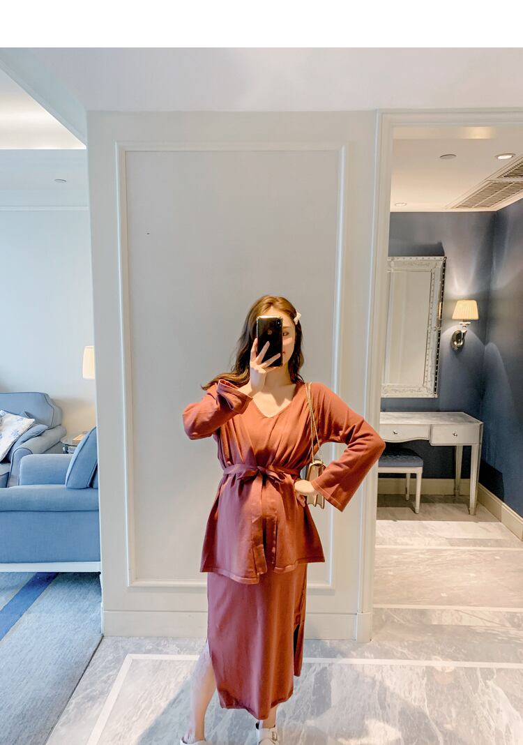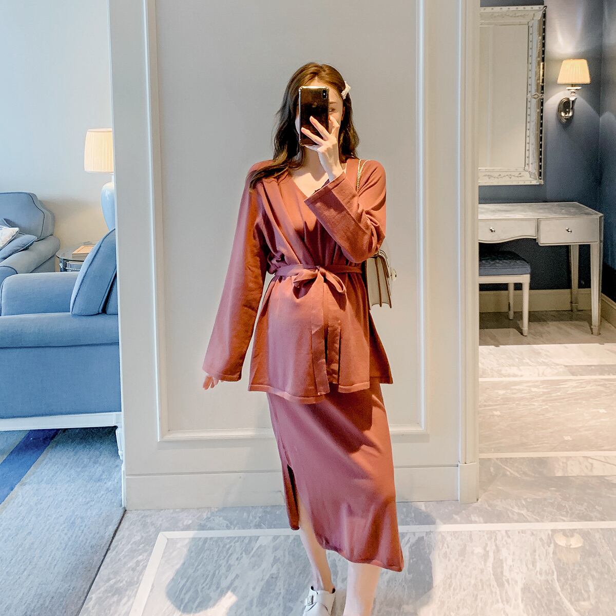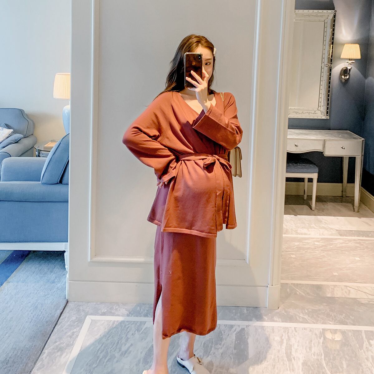 おしゃれ かわいい マタニティウェア ニットカーディガンロングルーズ スカート hotmom84248223395