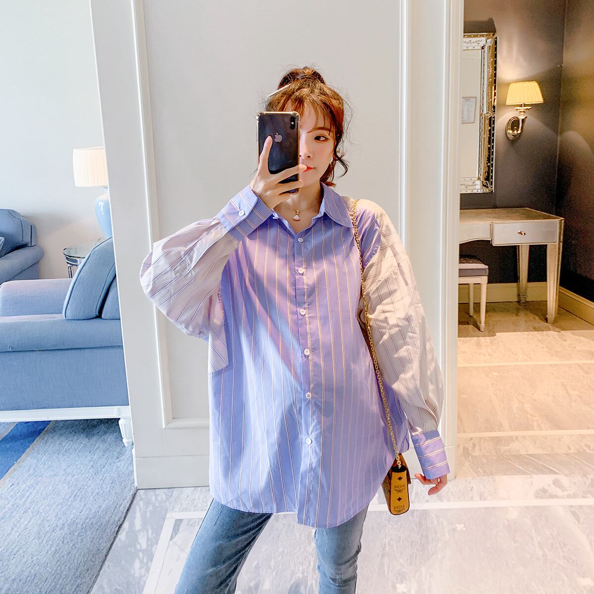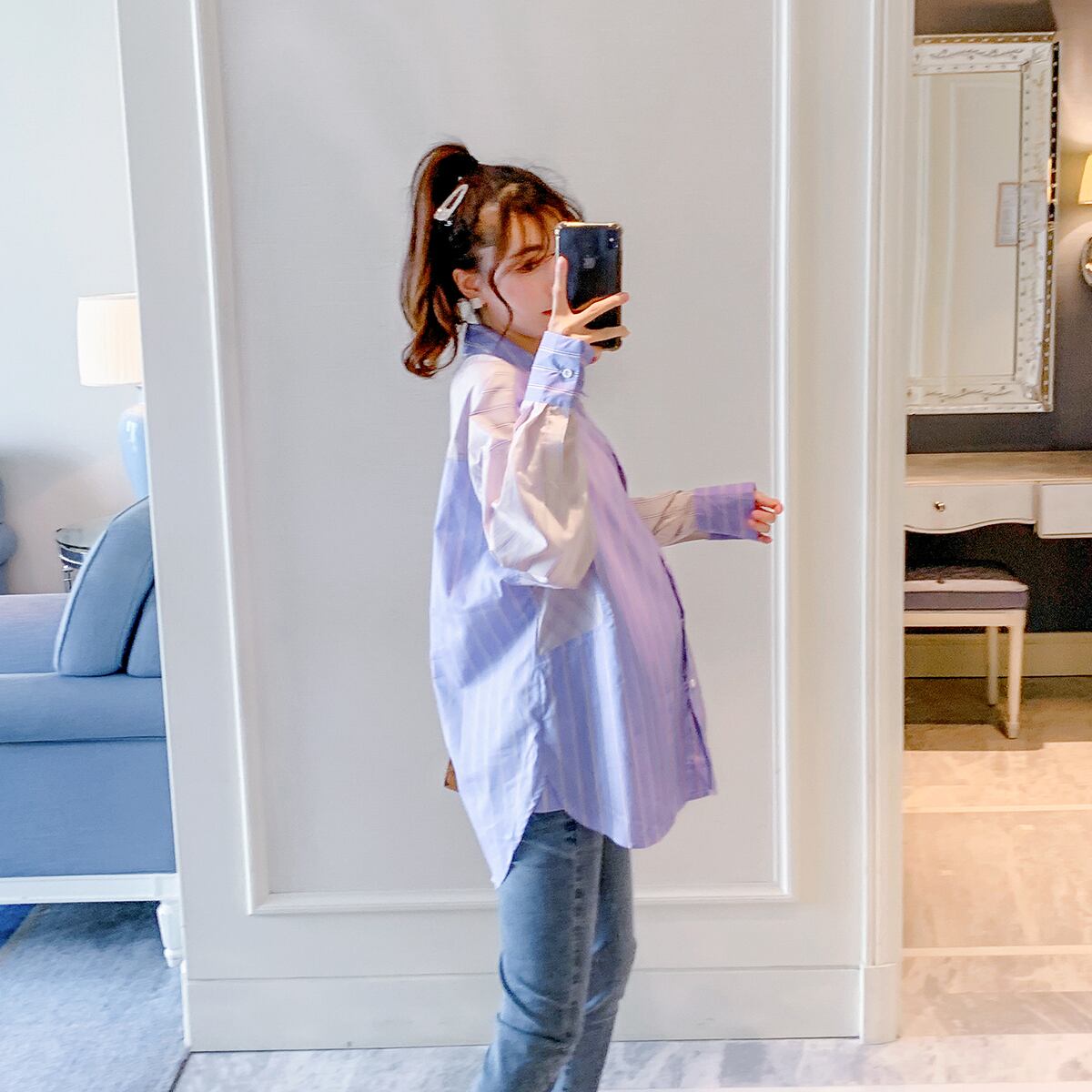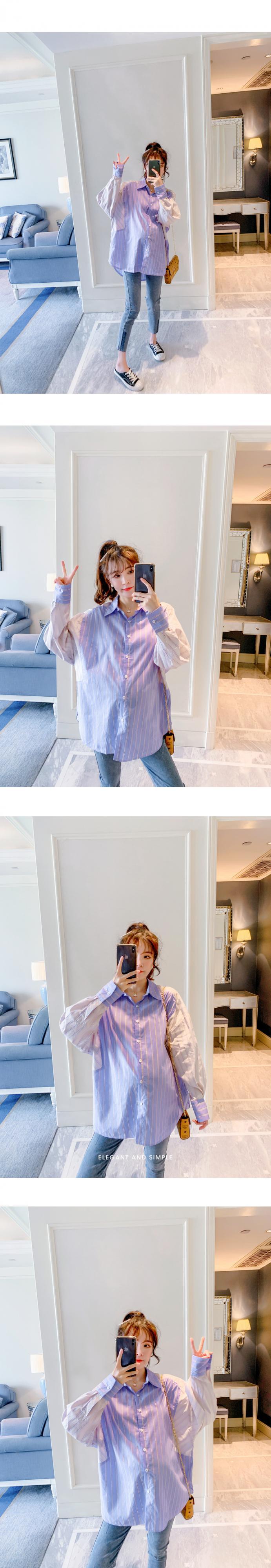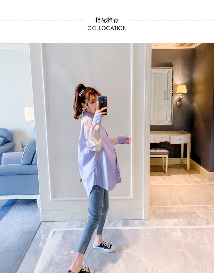 おしゃれ かわいい マタニティウェア シャツ トップス ルーズスタイルストライプカラー コットン hotmom11722779974