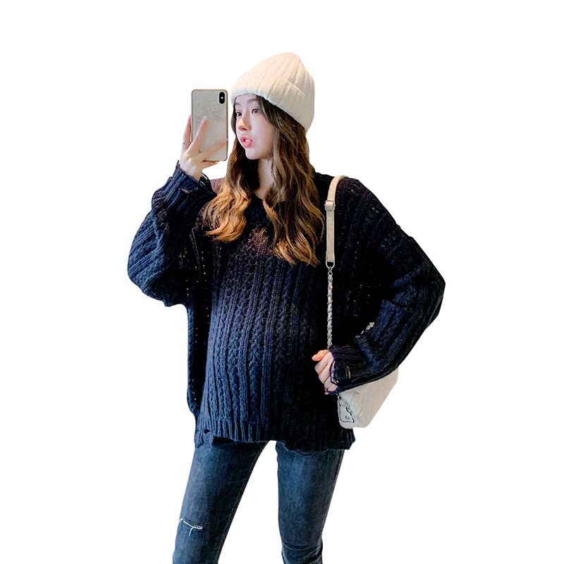 おしゃれ かわいい マタニティウェア セーター スプリングオータムニット ルーズスタイル薄手 ロング 大きめサイズ 春物 秋物 hotmom50232715025