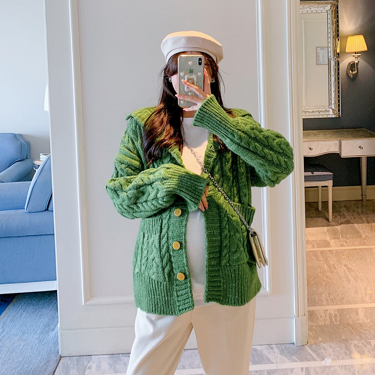 おしゃれ かわいい マタニティウェア ニットセーター ルーズウールカーディガンコート ロング hotmom94066035156