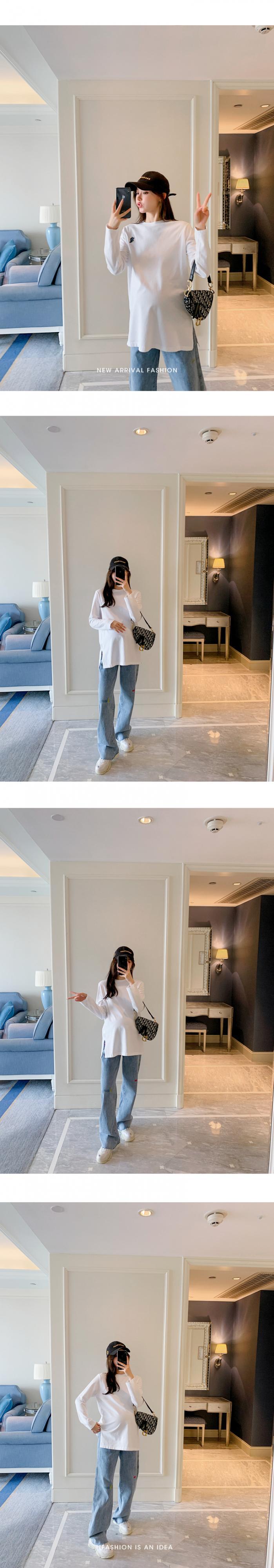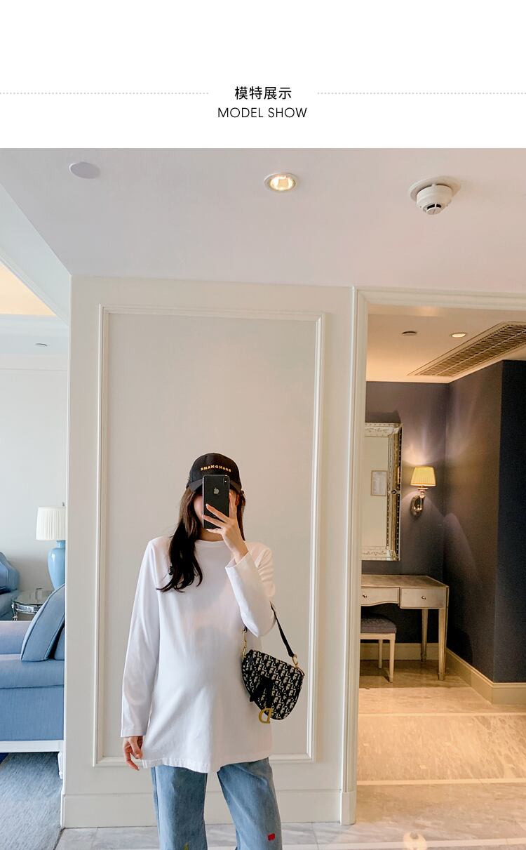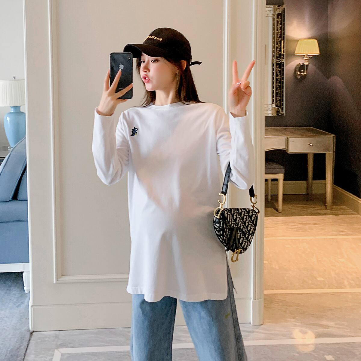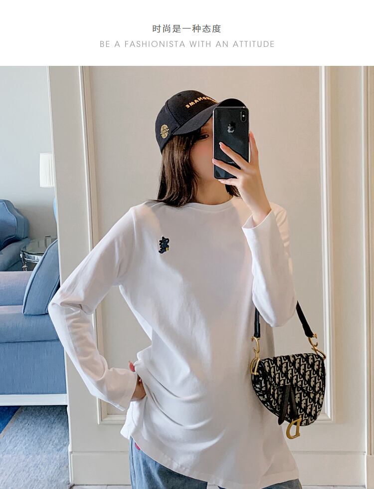 おしゃれ かわいい マタニティウェア Tシャツ ルーズロング コットン 長袖 刺繍 大きめサイズ ピュア hotmom55407060458
