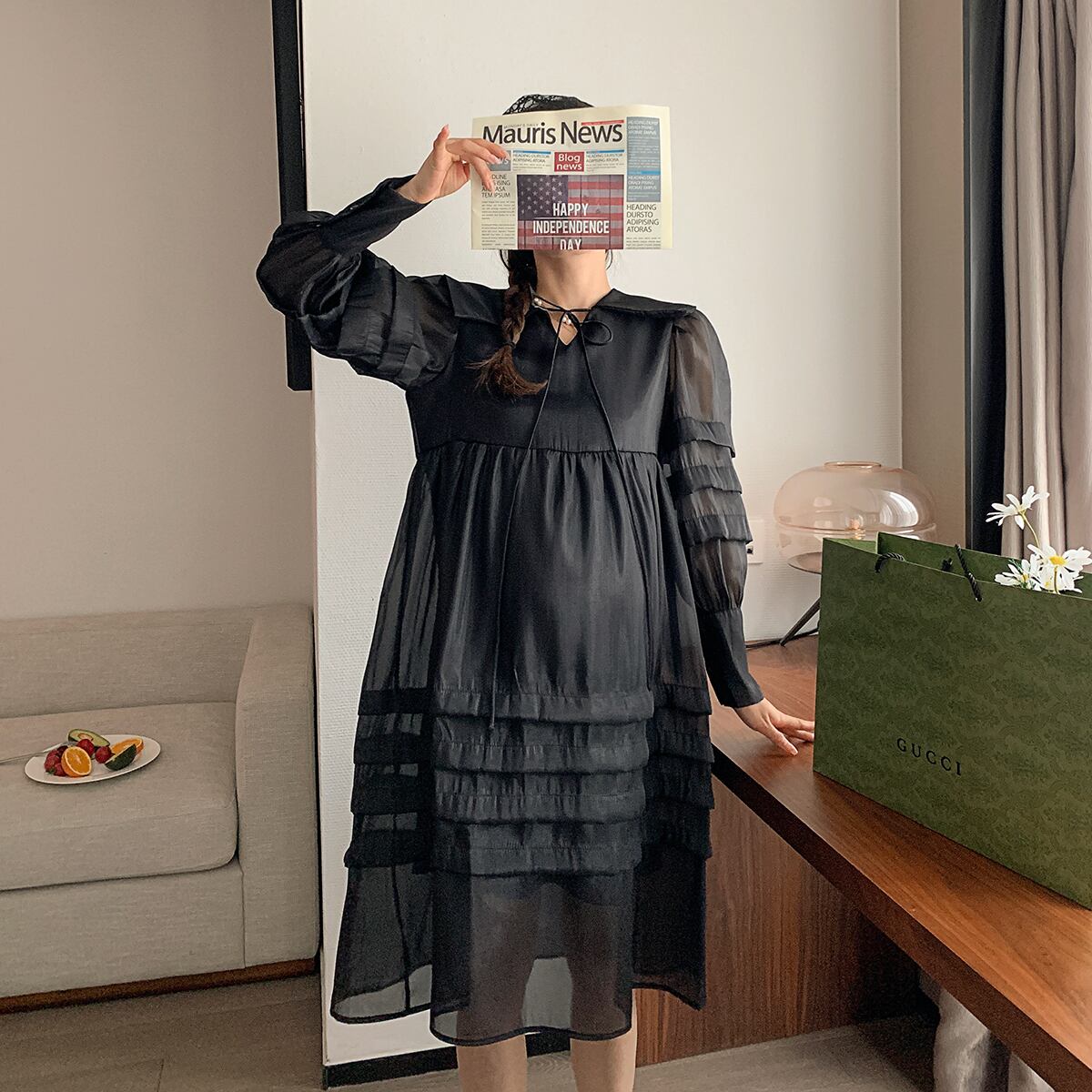 おしゃれ かわいい マタニティウェア スカート サマードレス ロングブラック 大人ガーリー スウィート キュート カジュアル 夏物 hotmom87469877049