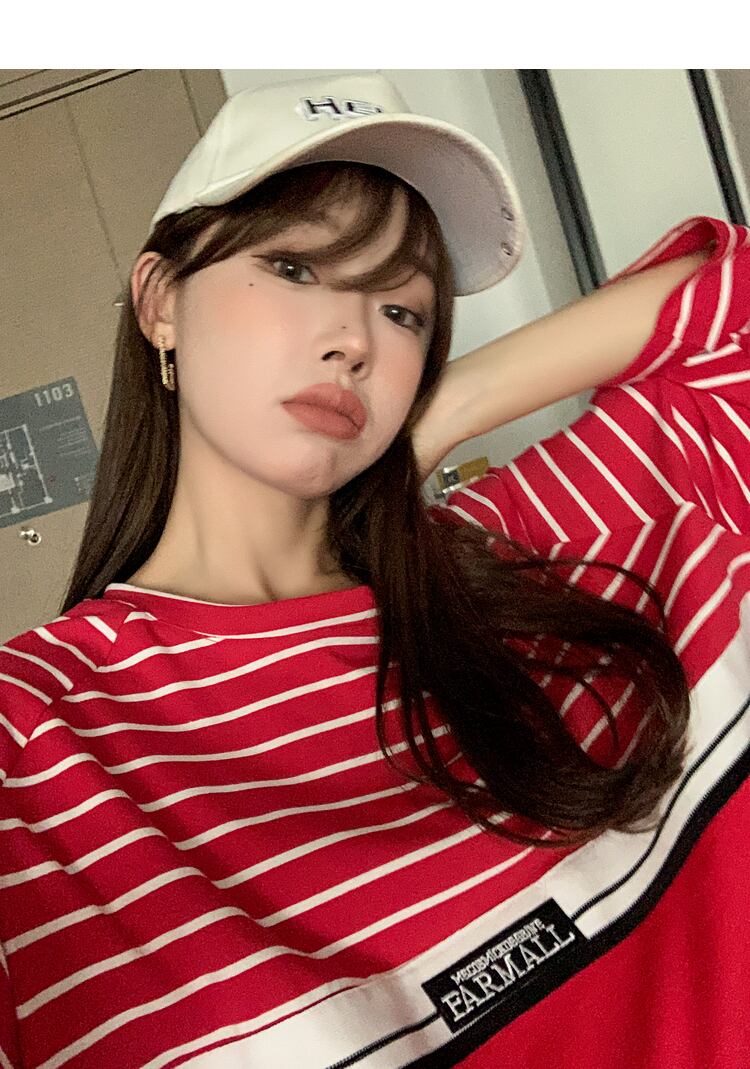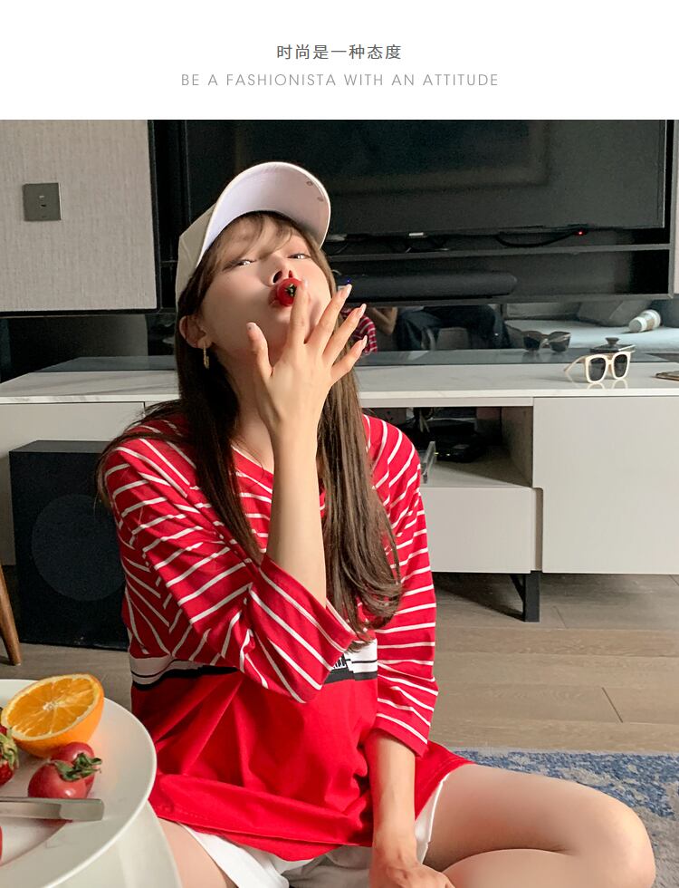 おしゃれ かわいい マタニティウェア レディースTシャツ サマーストライプニットトップス ルーズスタイル 大きめサイズ 夏物 hotmom62298142622