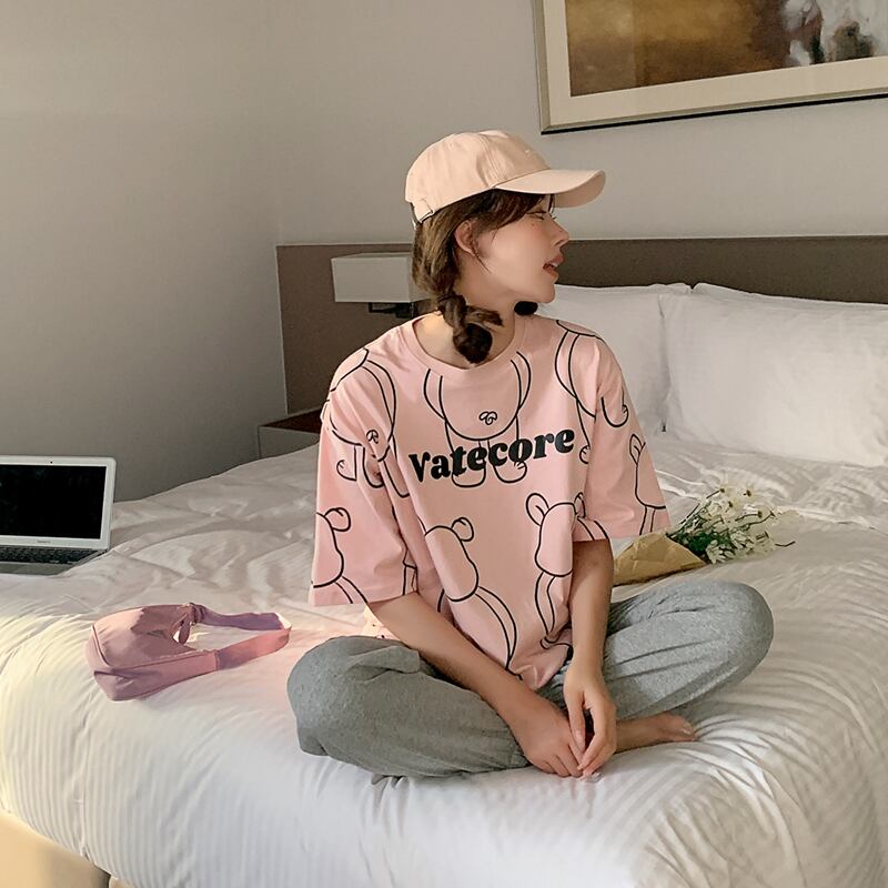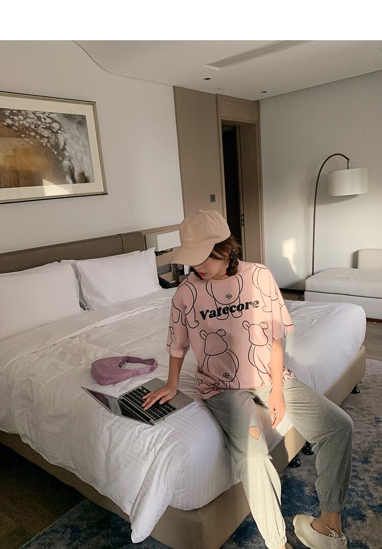 おしゃれ かわいい マタニティウェア Tシャツ サマールーズプリント薄手刺繍カジュアルパンツ コットン 大きめサイズ 夏物 hotmom2017515074