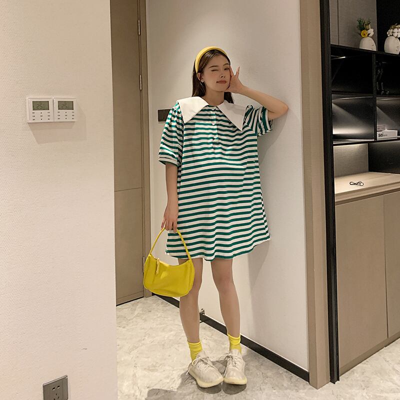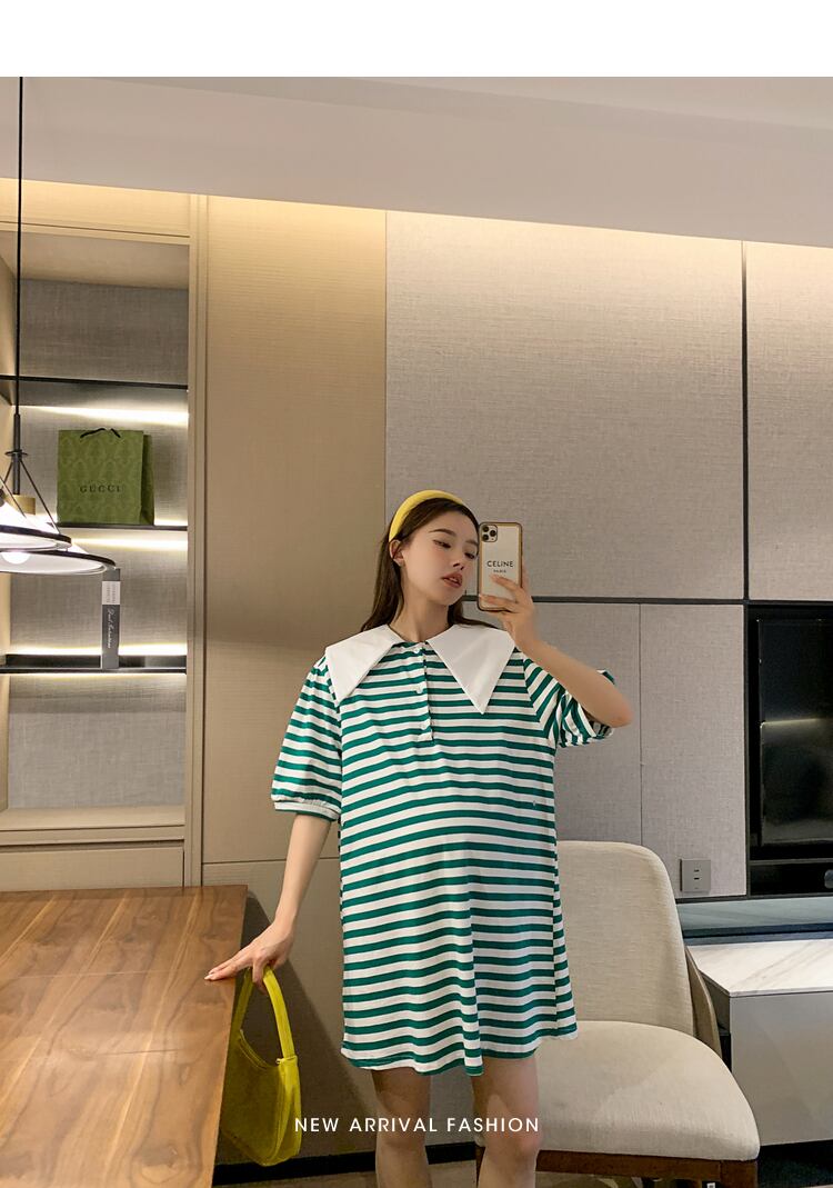おしゃれ かわいい マタニティウェア Tシャツ スカート サマードレス ストライプルーズカラー 大きめサイズ 夏物 hotmom38462544516