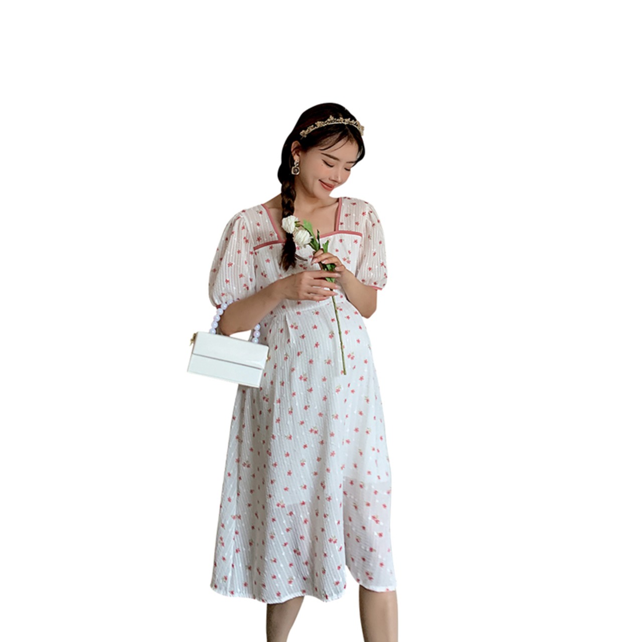 おしゃれ かわいい マタニティウェア ドレス ワンピース サマーフローラルロング 夏物 花柄 スカート hotmom58078799615