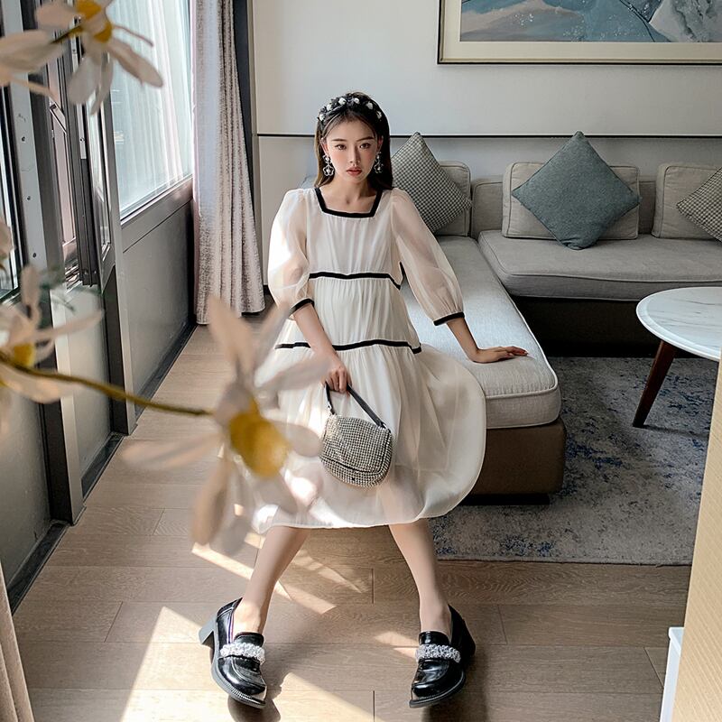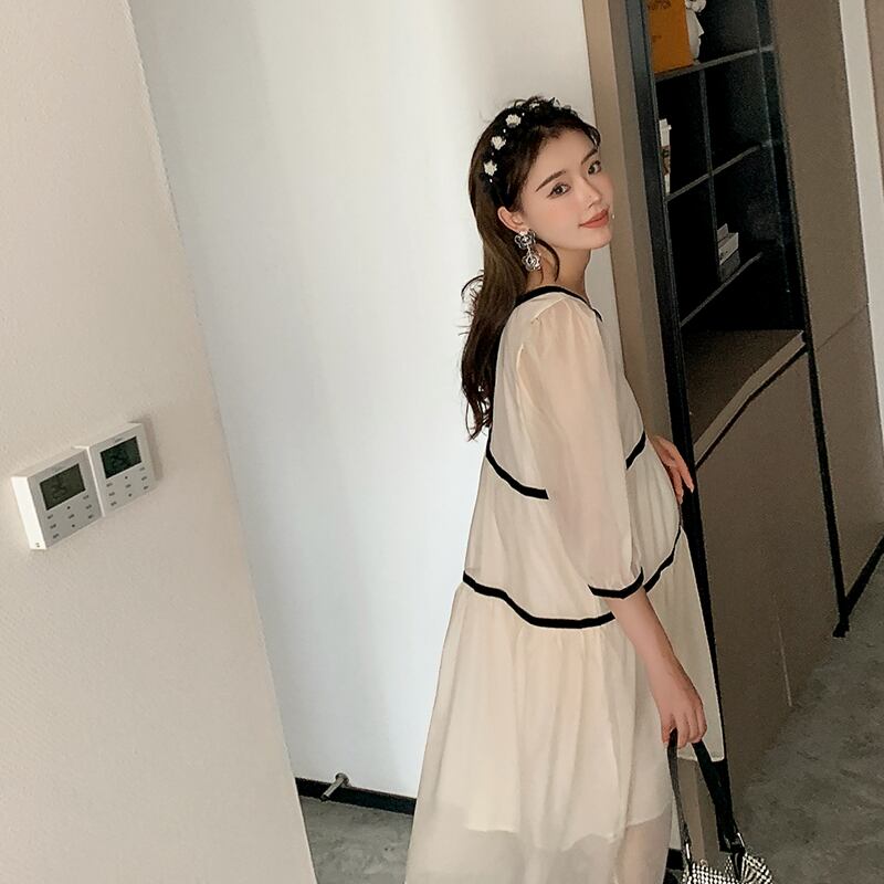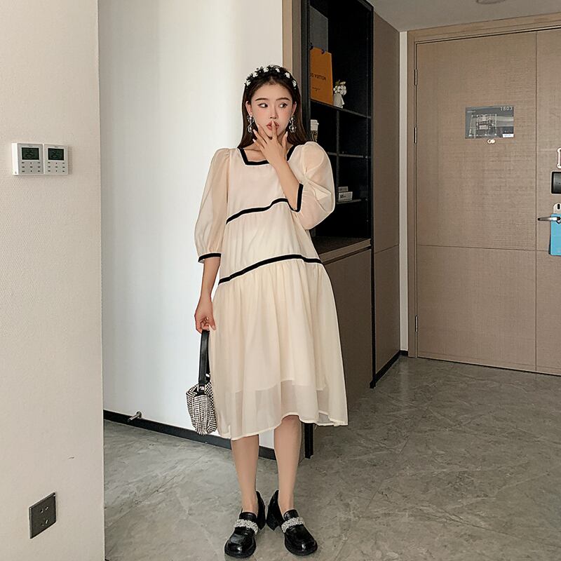 おしゃれ かわいい マタニティウェア ドレス サマースリーブシフォンルーズスカート 大きめサイズ 大人ガーリー スウィート キュート カジュアル 夏物 スクウェア hotmom45713945743