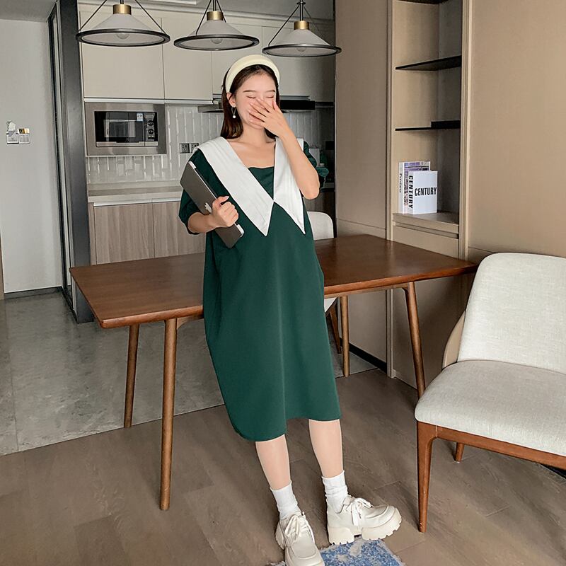 おしゃれ かわいい マタニティウェア ドレス サマー薄手Vネックルーズスリーブ 大きめサイズ 夏物 hotmom81507666111
