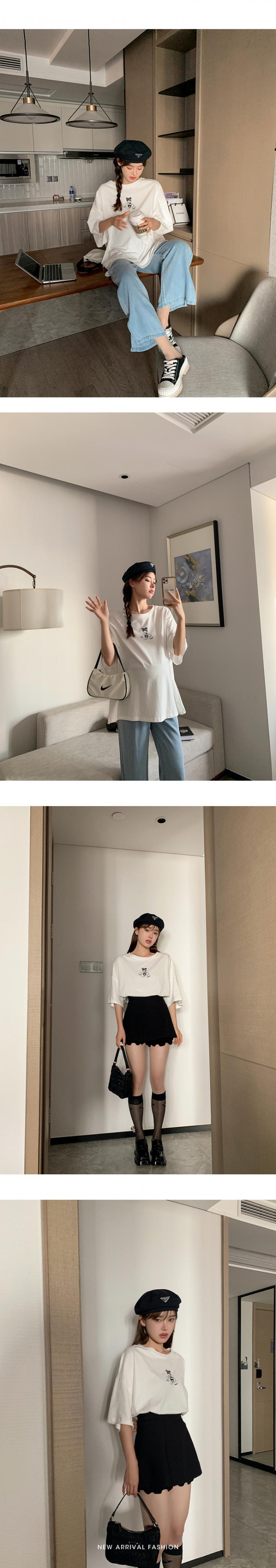 おしゃれ かわいい マタニティウェア Tシャツ サマー薄手半袖スリーブプリントルーズホワイトトップス ショート コットン ハーフスリーブ 大きめサイズ 夏物 ピュア hotmom42244893997