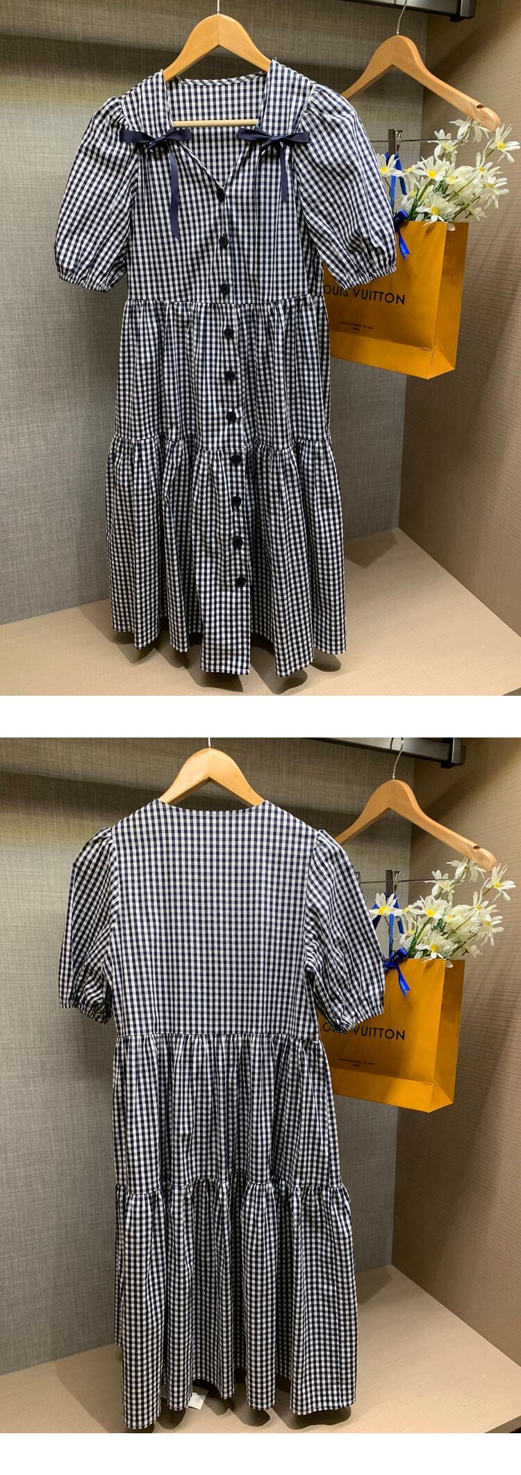 おしゃれ かわいい マタニティウェア サマー薄手格子柄ルーズドレス ワンピース リボン 夏物 hotmom65965932240