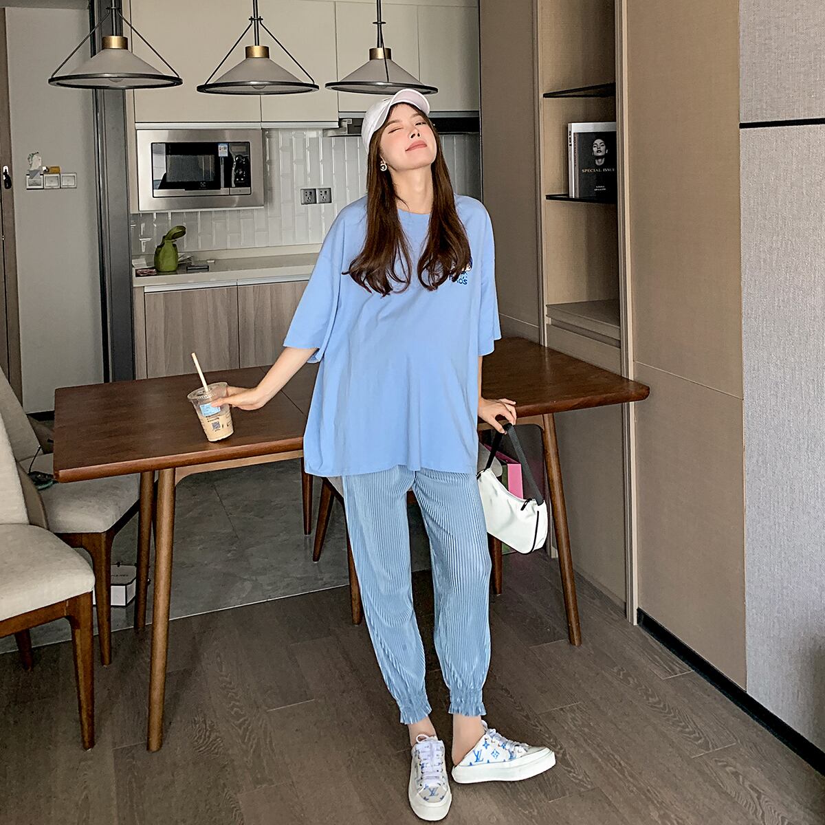 おしゃれ かわいい マタニティウェア サマーTシャツ 薄手ルーズプリント コットン 大きめサイズ 夏物 hotmom3407291076