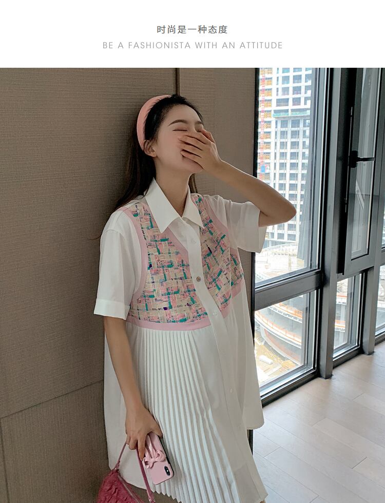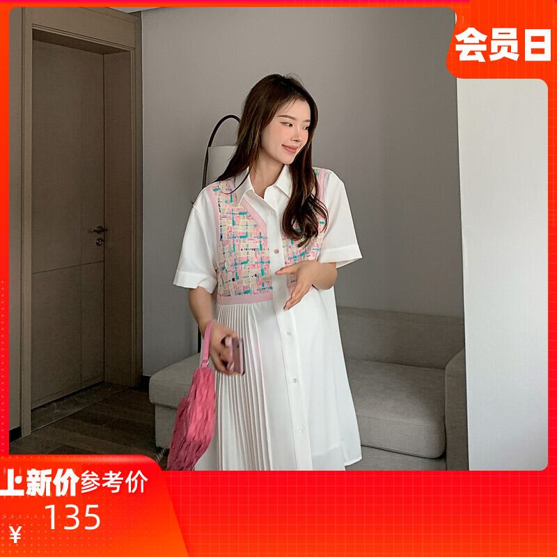 おしゃれ かわいい マタニティウェア ドレス サマー薄手プリーツルーズシャツ スカート 夏物 ステッチ hotmom79422438046