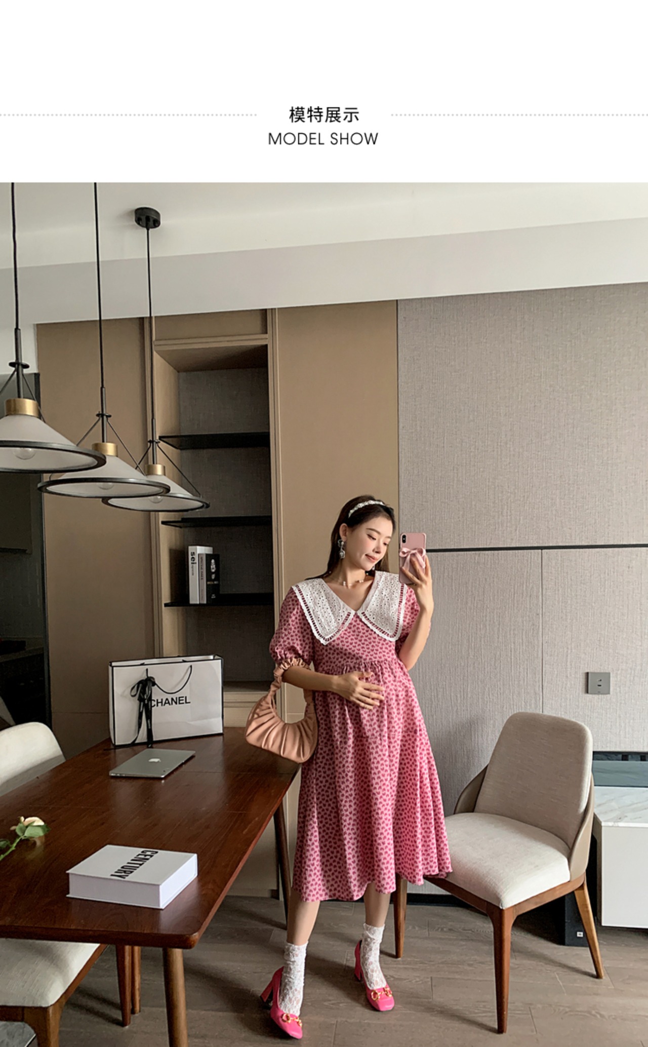 おしゃれ かわいい マタニティウェア サマードレス 薄手レースFlowerデザイン ルーズ 夏物 フラワーデザイン hotmom32883721063