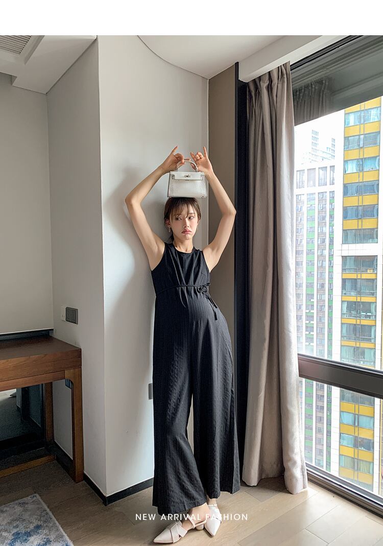 おしゃれ かわいい マタニティウェア ジャンプスーツ オールインワン サマーノースリーブルーズパンツ ワイドレッグ 夏物 ワイドパンツ hotmom58048754506