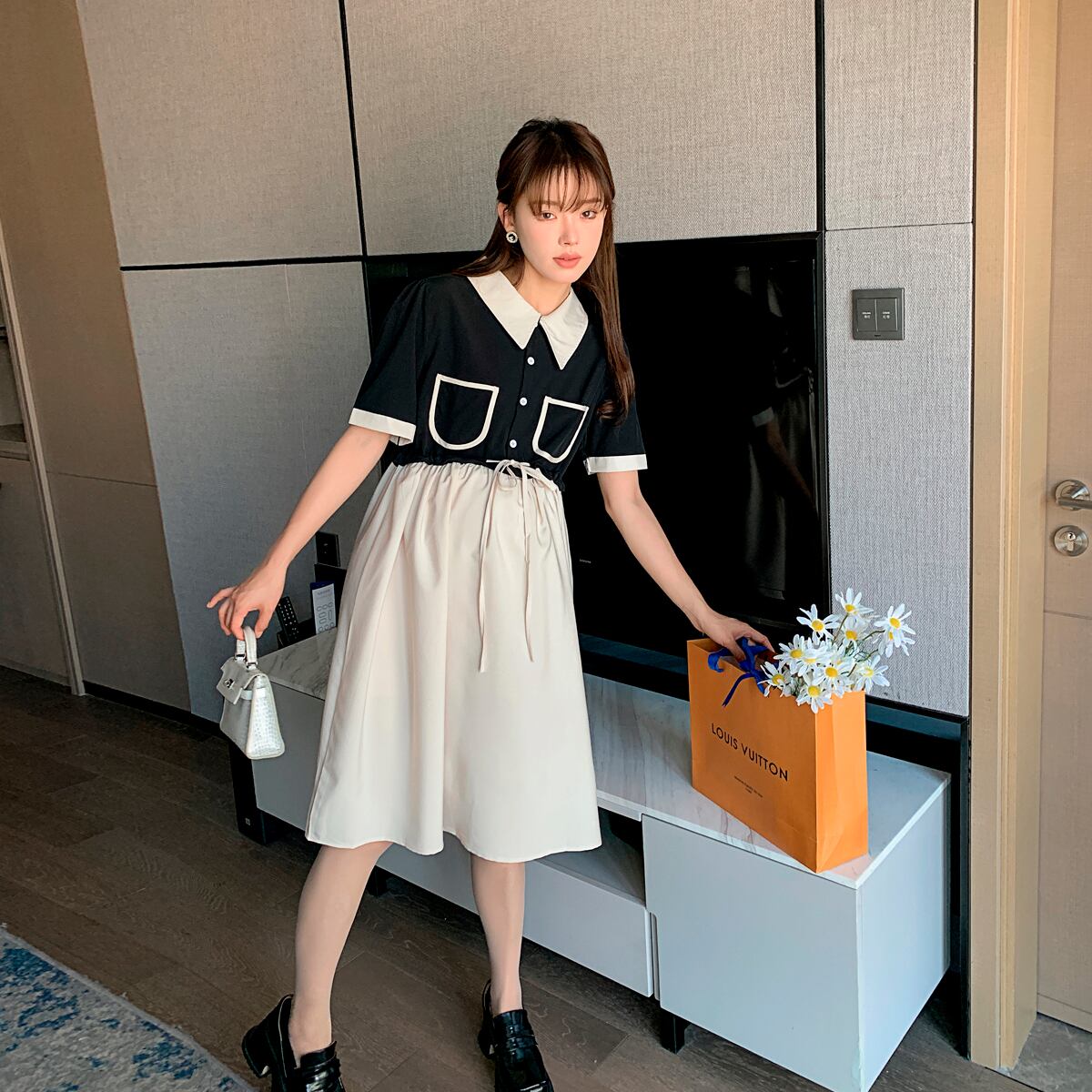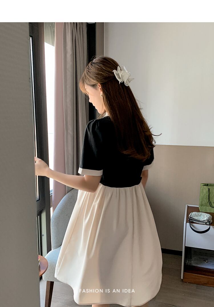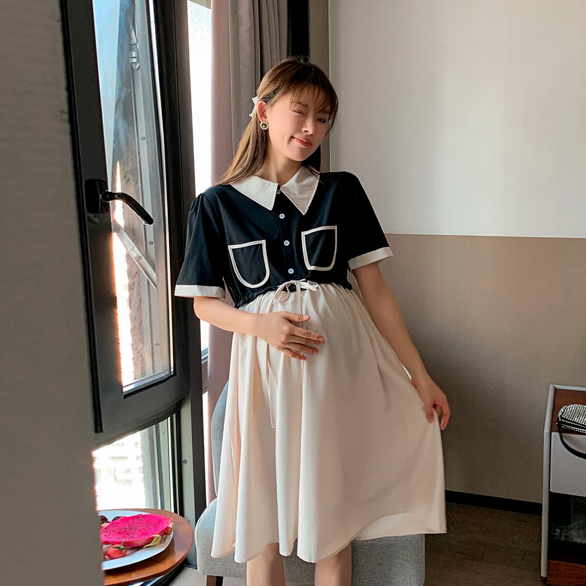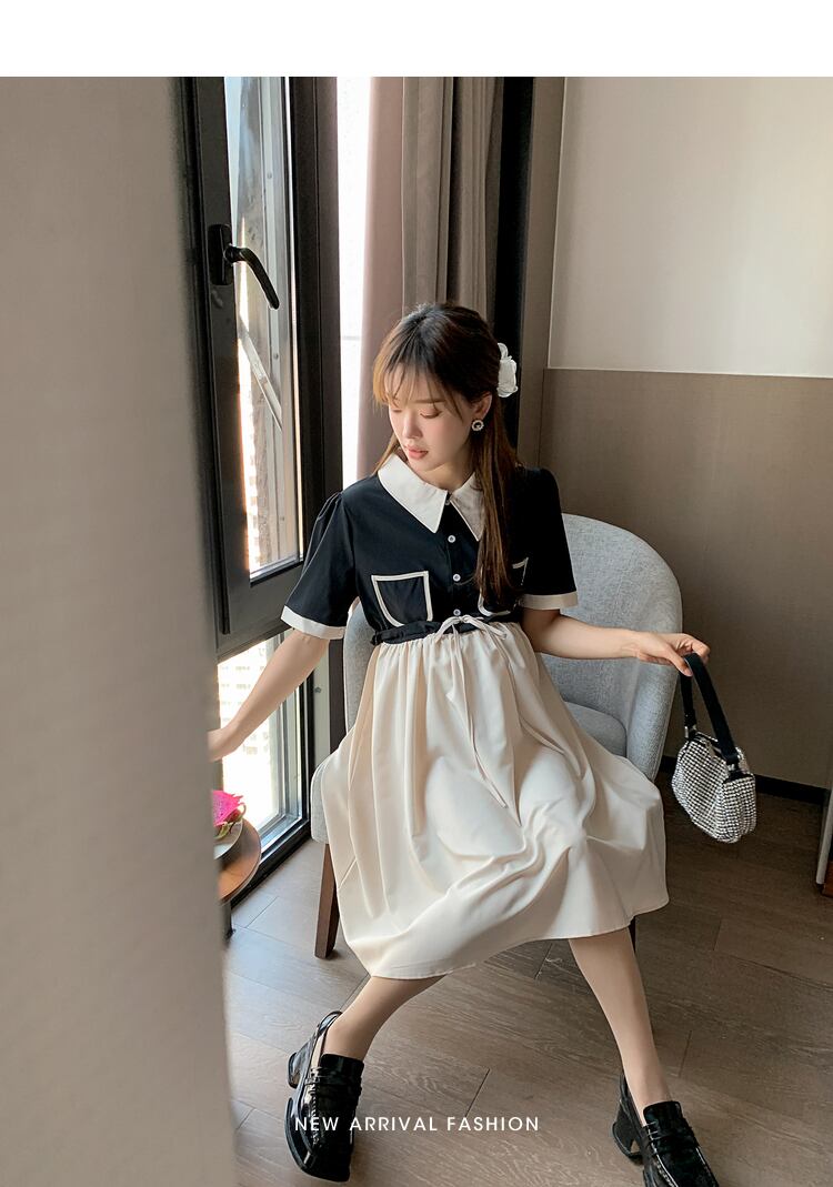 おしゃれ かわいい マタニティウェア ドレス サマー薄手シフォンルーズブラックスカート 夏物 ステッチ hotmom55247098001