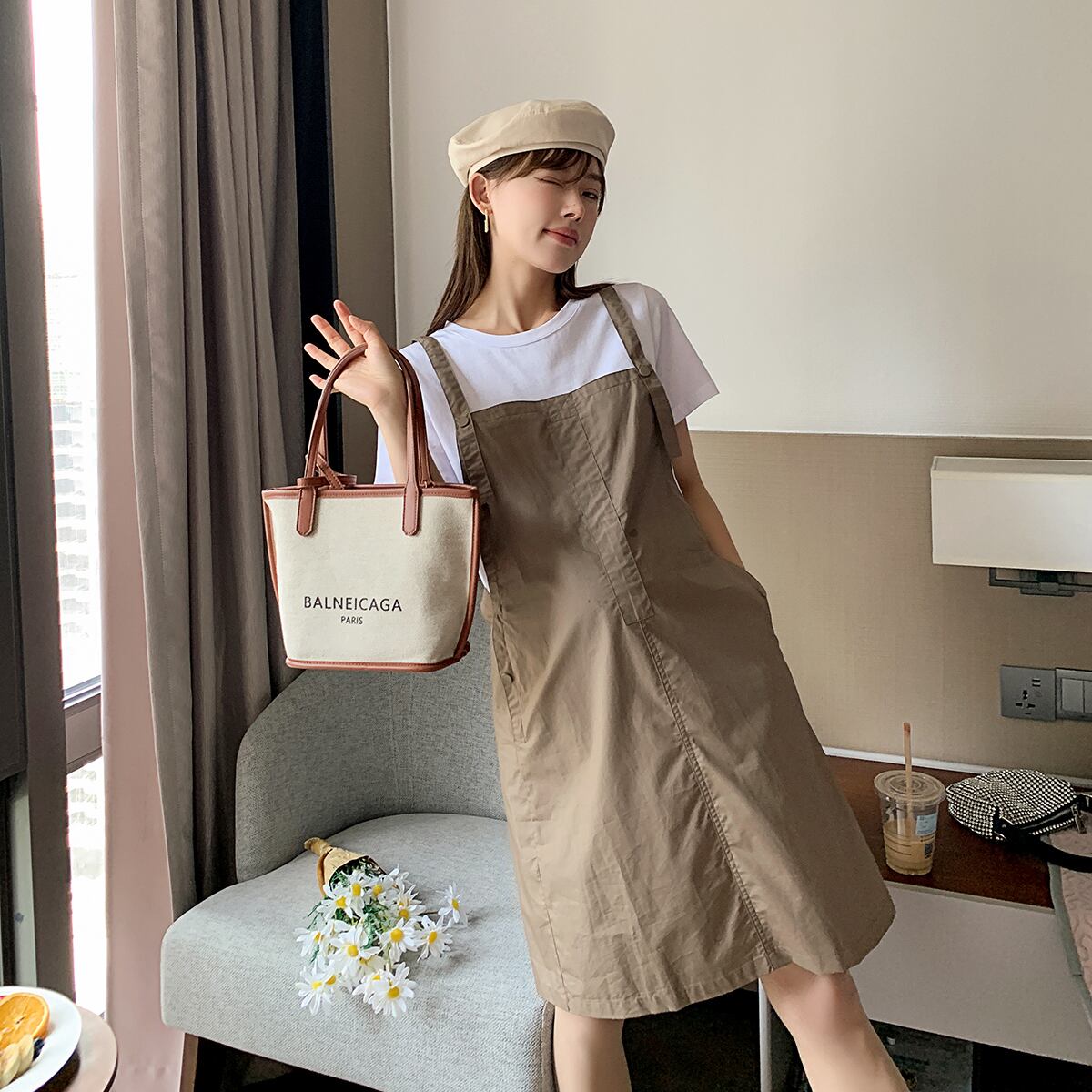 おしゃれ かわいい マタニティウェア サマードレス Tシャツ ストラップ ルーズ薄手スカート 夏物 ステッチ hotmom54559029805