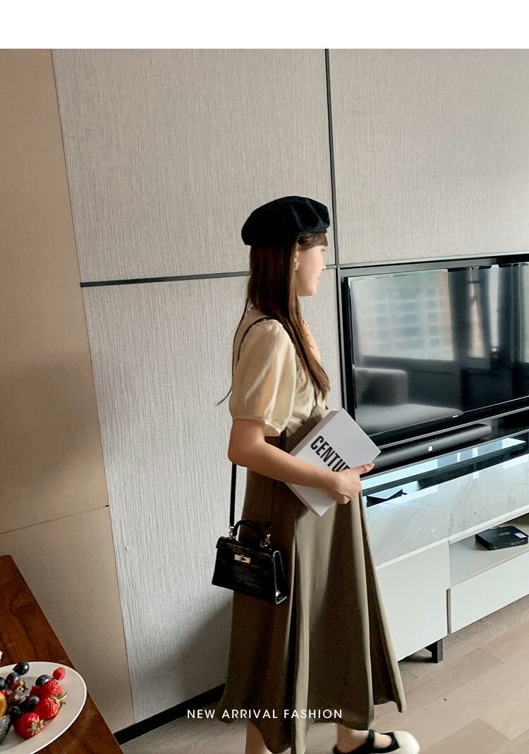色:コーヒーカラーサスペンダースカート,アプリコットトップ