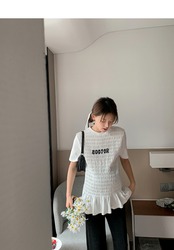 おしゃれ かわいい マタニティウェア Tシャツ サマー薄手ホワイトトップス コットン 夏物 hotmom78105562694