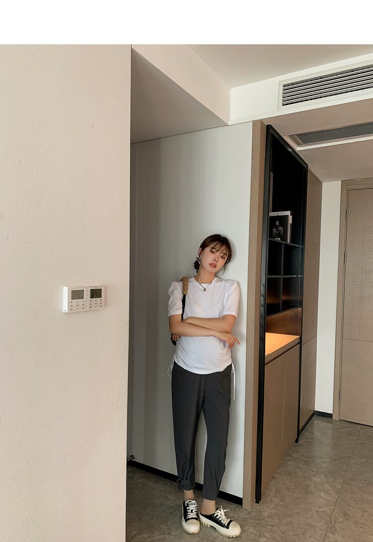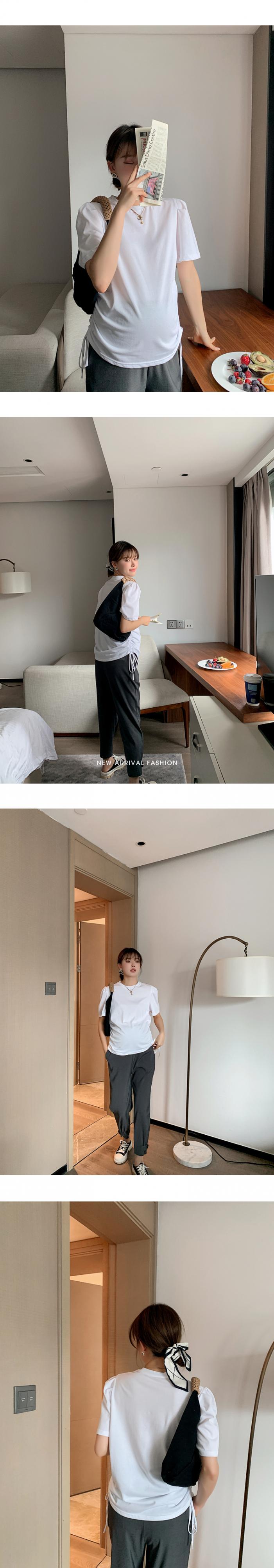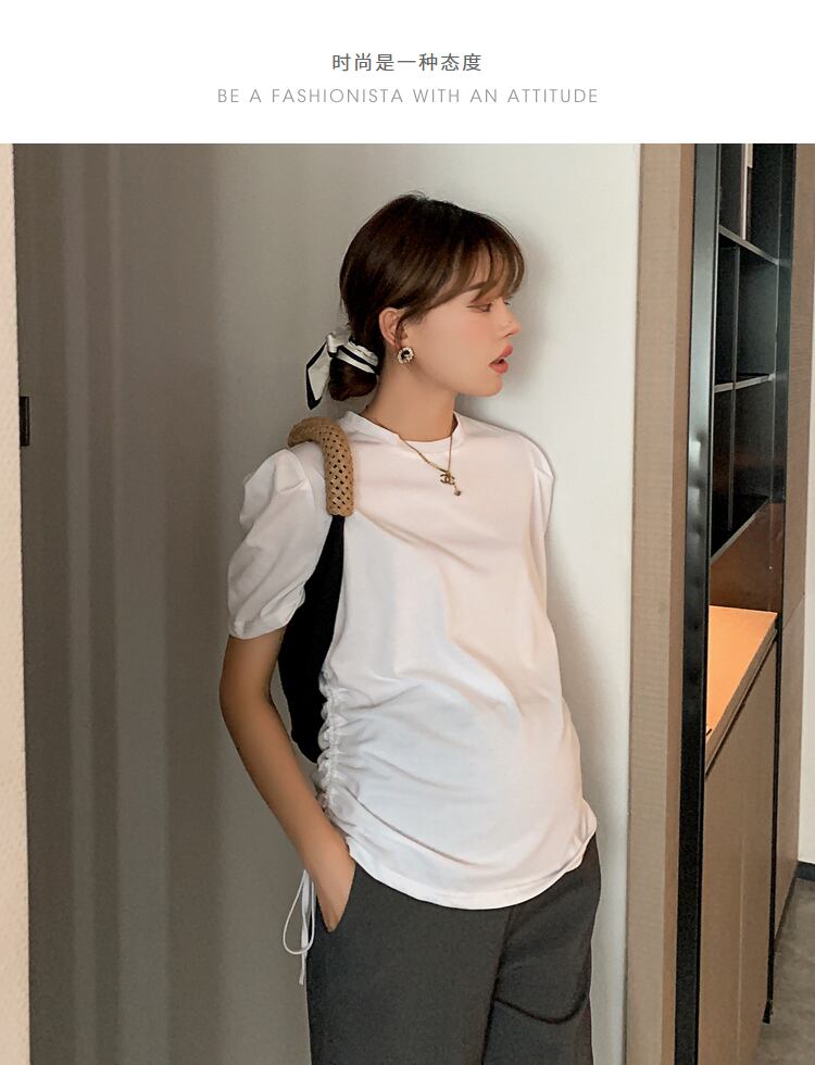 おしゃれ かわいい マタニティウェア Tシャツ シャツ サマー薄手ギャザーホワイトトップス コットン 夏物 hotmom72446101222