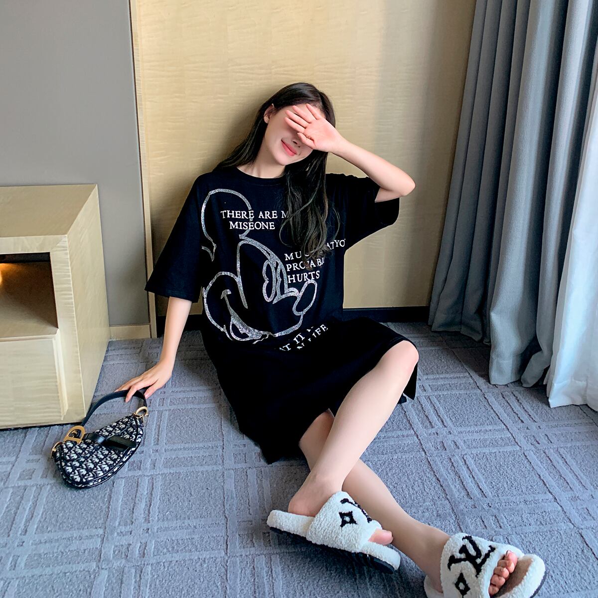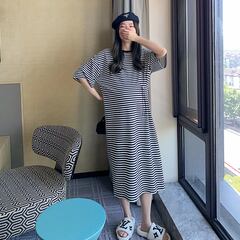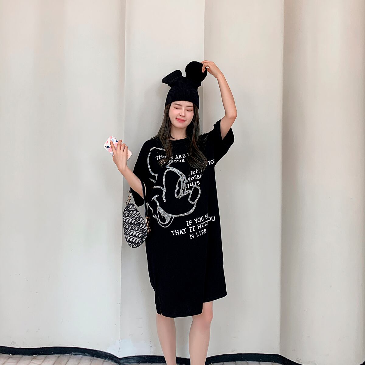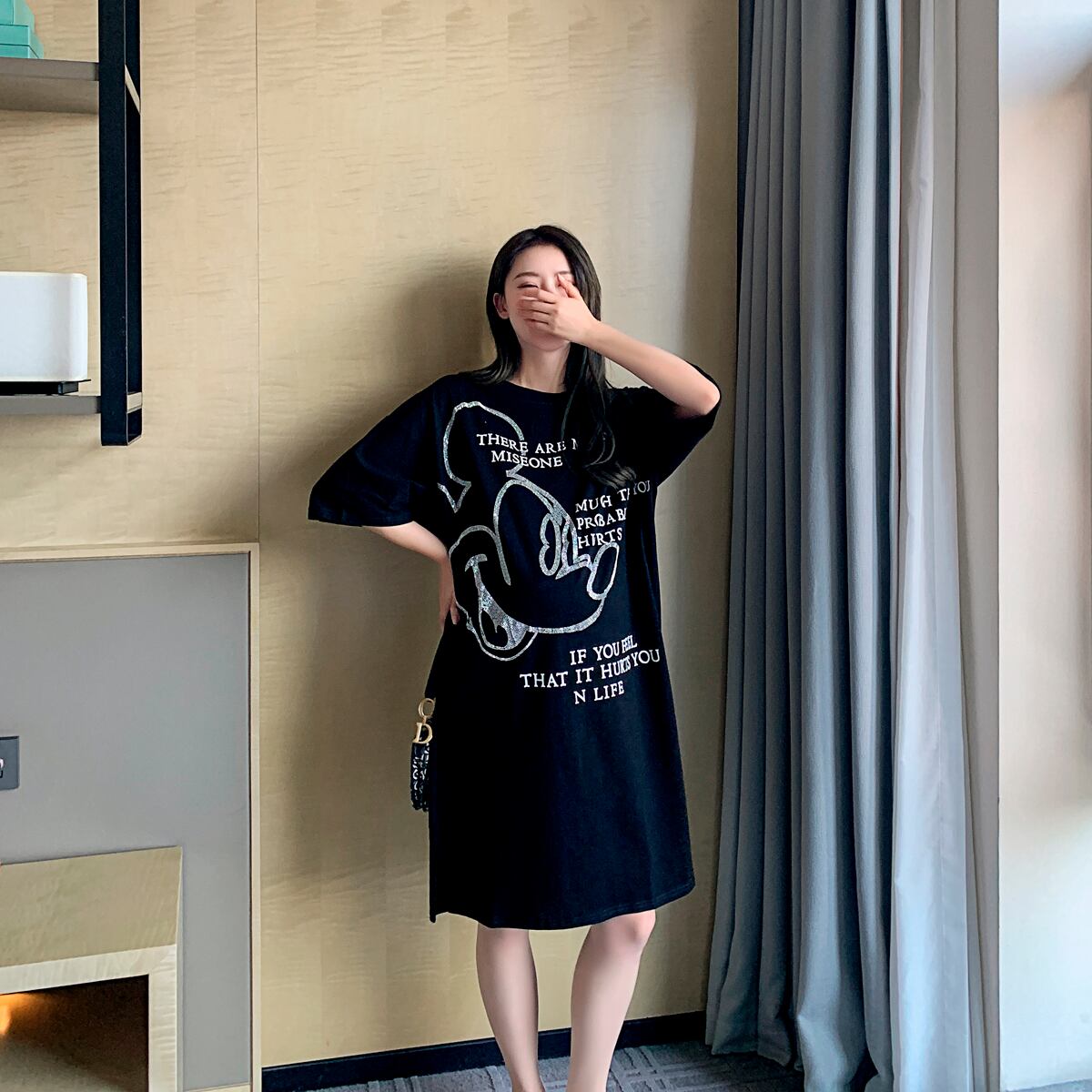 おしゃれ かわいい マタニティウェア サマー薄手Tシャツ プリントルーズドレス 大きめサイズ 夏物 hotmom7054947473