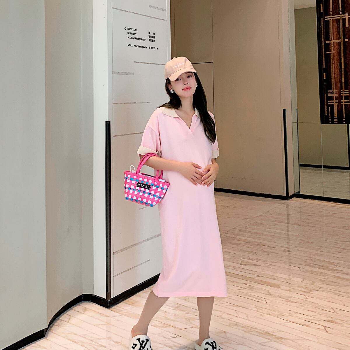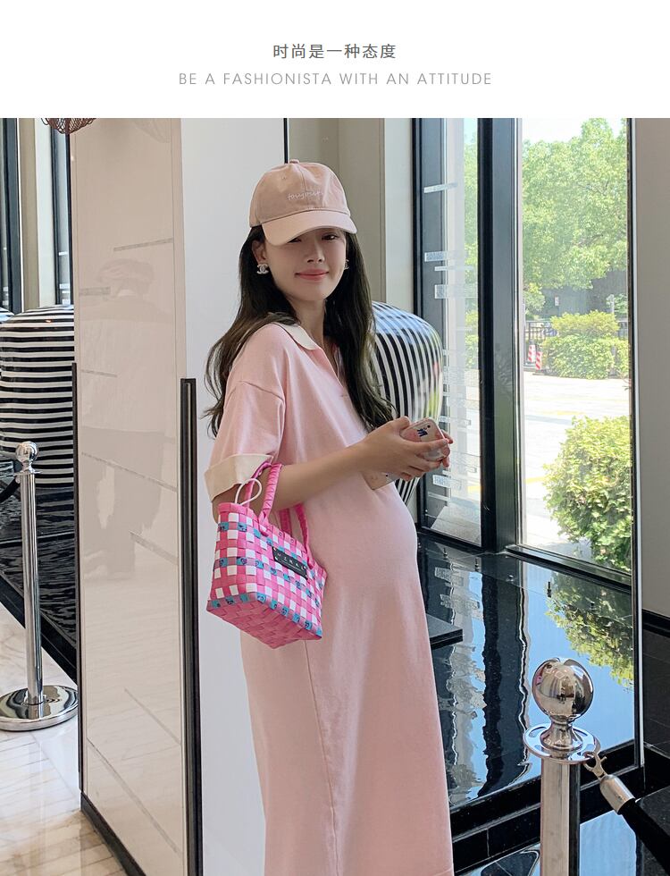 おしゃれ かわいい マタニティウェア サマー薄手ニットドレス ビーズ Tシャツ スカート 夏物 シルク hotmom48324035119