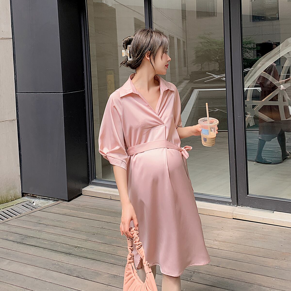 おしゃれ かわいい マタニティウェア ドレス サマー薄手ルーズシャツ スカート 大きめサイズ 夏物 シルキー hotmom60882146429