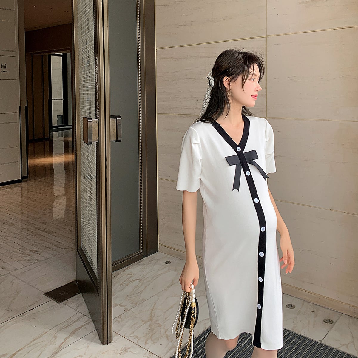 おしゃれ かわいい マタニティウェア ドレス サマー薄手スリーブ リボン 夏物 シルク hotmom45598234008