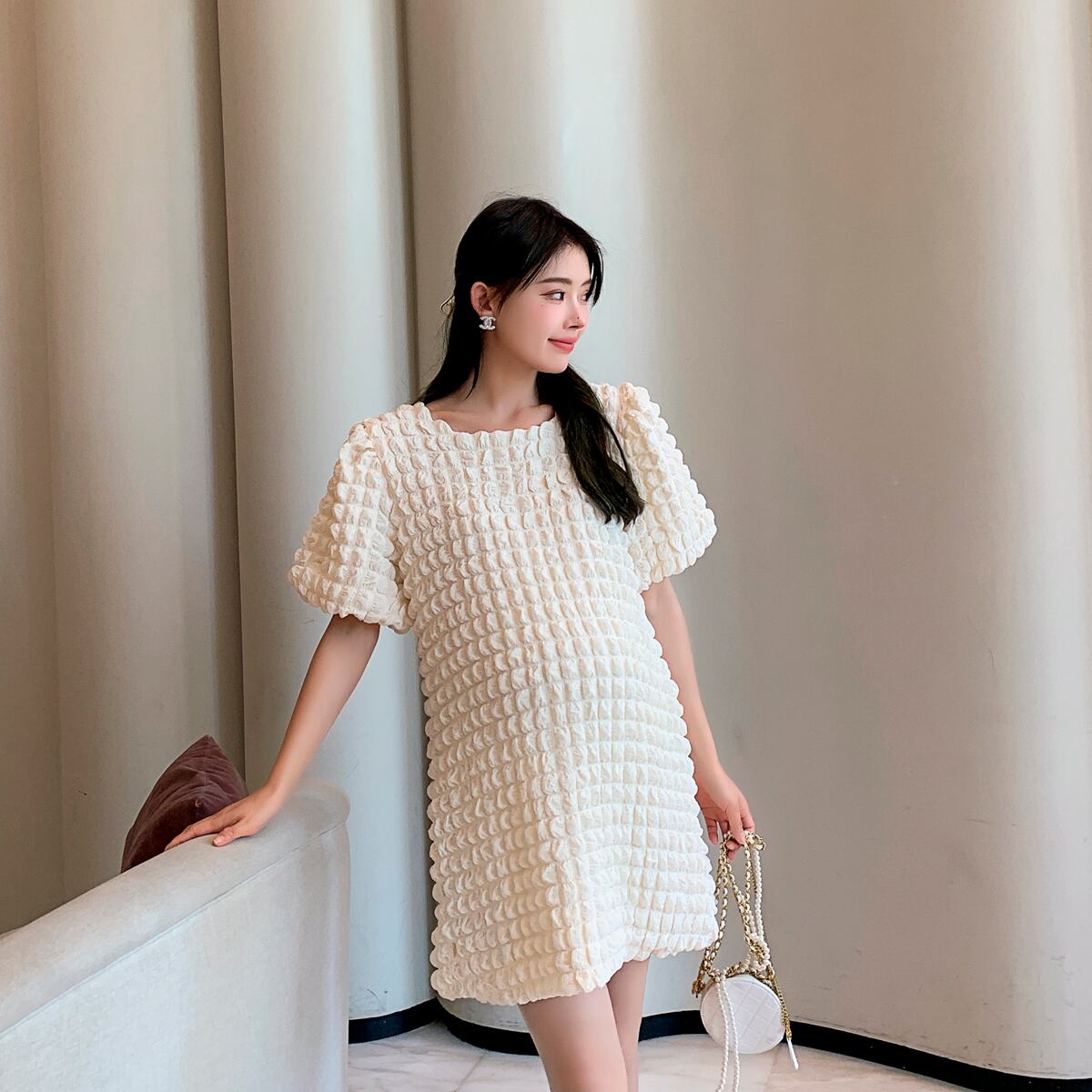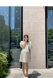 おしゃれ かわいい マタニティウェア ドレス サマー薄手スリーブルーズ格子柄スカート 夏物 hotmom69242455777